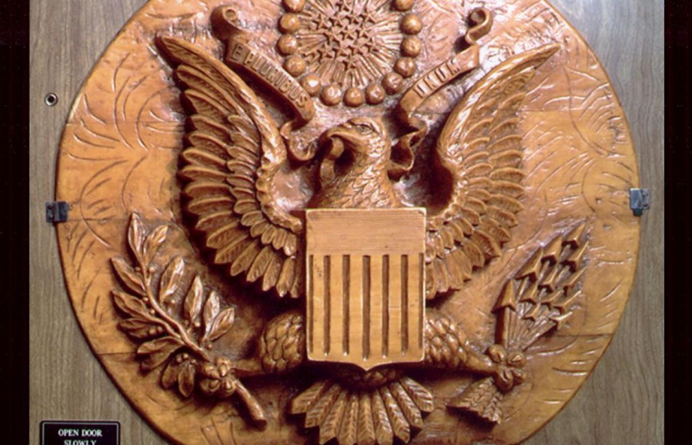 Ozdoba wisiała w gabinecie przez siedem lat, podsłuch odkryto przypadkiem – jego prostota i pomysłowość przerastała stosowane techniki. Nadajnik był urządzeniem biernym (sam nie emitował sygnału, nie wymagał też zasilania), uruchamianym przez zewnętrzny sygnał radiowy o odpowiedniej częstotliwości. Ambasador Lodge dodał, że ponad sto takich pluskiew znaleziono w innych amerykańskich biurach. Nie wiedział jednak, że twórcą zaprezentowanego w nowojorskiej siedzibie ONZ podsłuchu był Lew Termen – ten sam, który przed laty eksperymentował z elektronicznymi dźwiękami w studiu kilka przecznic dalej. Ten, który w USA opracował system detektorów ruchu, zainstalowany jako pierwszy w historii elektroniczny system bezpieczeństwa w więzieniu Sing Sing. I ten, którego instrument robił właśnie furorę w Hollywood.