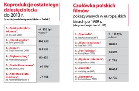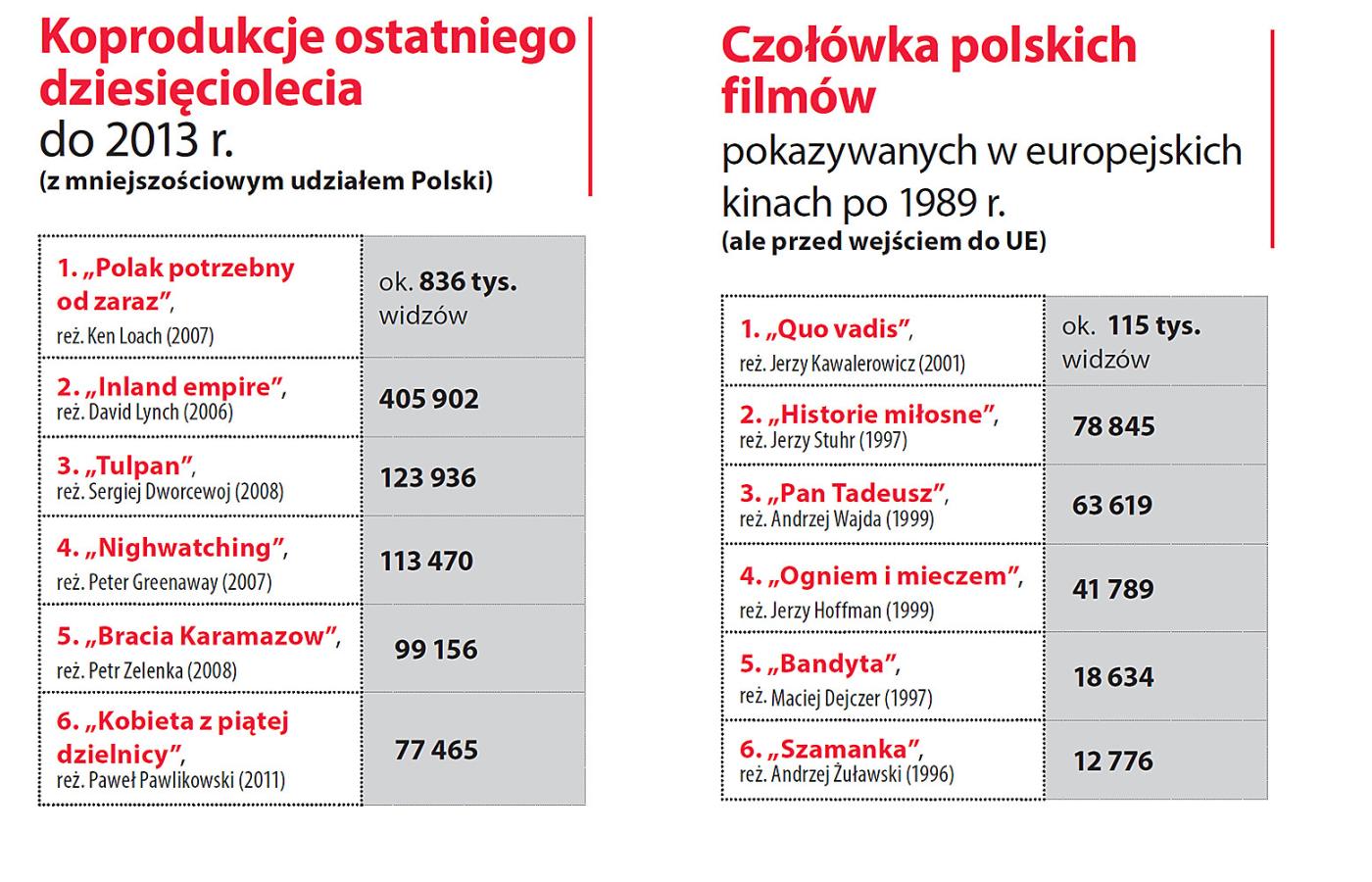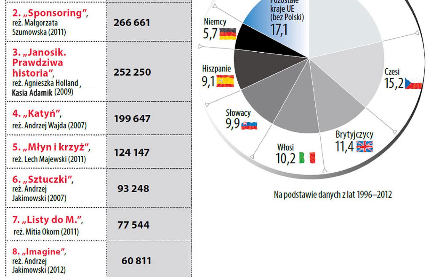 Na europejskiej liście filmowych bestsellerów znajdziemy też kilka niespodzianek. Świąteczną komedię romantyczną „Listy do M.” w Słowenii, ojczyźnie reżysera Miti Okorna, obejrzało blisko 78 tys. osób. Sukces filmu przyczynił się do przeprowadzenia głębokich zmian w słoweńskim ministerstwie kultury, mocno krytykowanym za nieudzielenie wsparcia rodakowi, który musiał szukać szczęścia za granicą. Zdziwienie budzi też stosunkowo wysoka frekwencja na nieudanym „Sztosie 2” Olafa Lubaszenki, który pod zmienionym tytułem „Polish Roulette” dystrybucję w Wielkiej Brytanii zakończył z wynikiem ok. 38 tys. widzów. Sprzedażą obrazu zajęła się firma Cooltura Films, próbująca wykorzystać potencjał naszej młodej emigracji. Sprowadziła do Wielkiej Brytanii również takie filmy, jak „Bitwa Warszawska 1920”, „Kac Wawa”, a ostatnio sensacyjny „Układ zamknięty”.