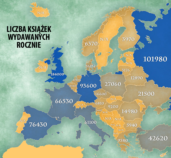 Mapy czeskiego lingwisty Jakuba Mariana ukazują prawdziwą (choć wyłącznie liczebną) wielkość europejskiego rynku książki – a raczej dominację kilku państw. Dominację dla niektórych zawstydzającą, okazuje się bowiem, że część krajów, choć równie wielkich (pod względem powierzchni i, co może ważniejsze, liczby mieszkańców), wydaje rocznie kilkadziesiąt tysięcy tytułów mniej.