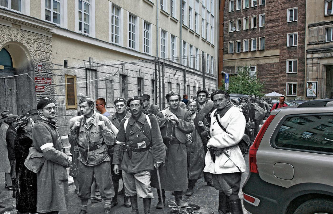 Powstańczy kombatanci formują kolumnę i czekają na wymarsz do niewoli. Na ich twarzach nie widać fatalistycznego nastroju. Pogodny okularnik odwrócony bokiem, uśmiechnięty posiadacz walizki, z czapką na bakier, i ten zakapior w białej kurtce nawet nie przypuszczają, ile mają szczęścia. Przeżyli. Nie wiedzą, bo niby skąd, że gen. Tadeusz Pełczyński, zastępca komendanta głównego AK, brał pod uwagę również inne rozwiązanie. I on, i oni mieli wyruszyć w innym kierunku. I nie konwojowani przez hitlerowców, ale przez Sowietów.