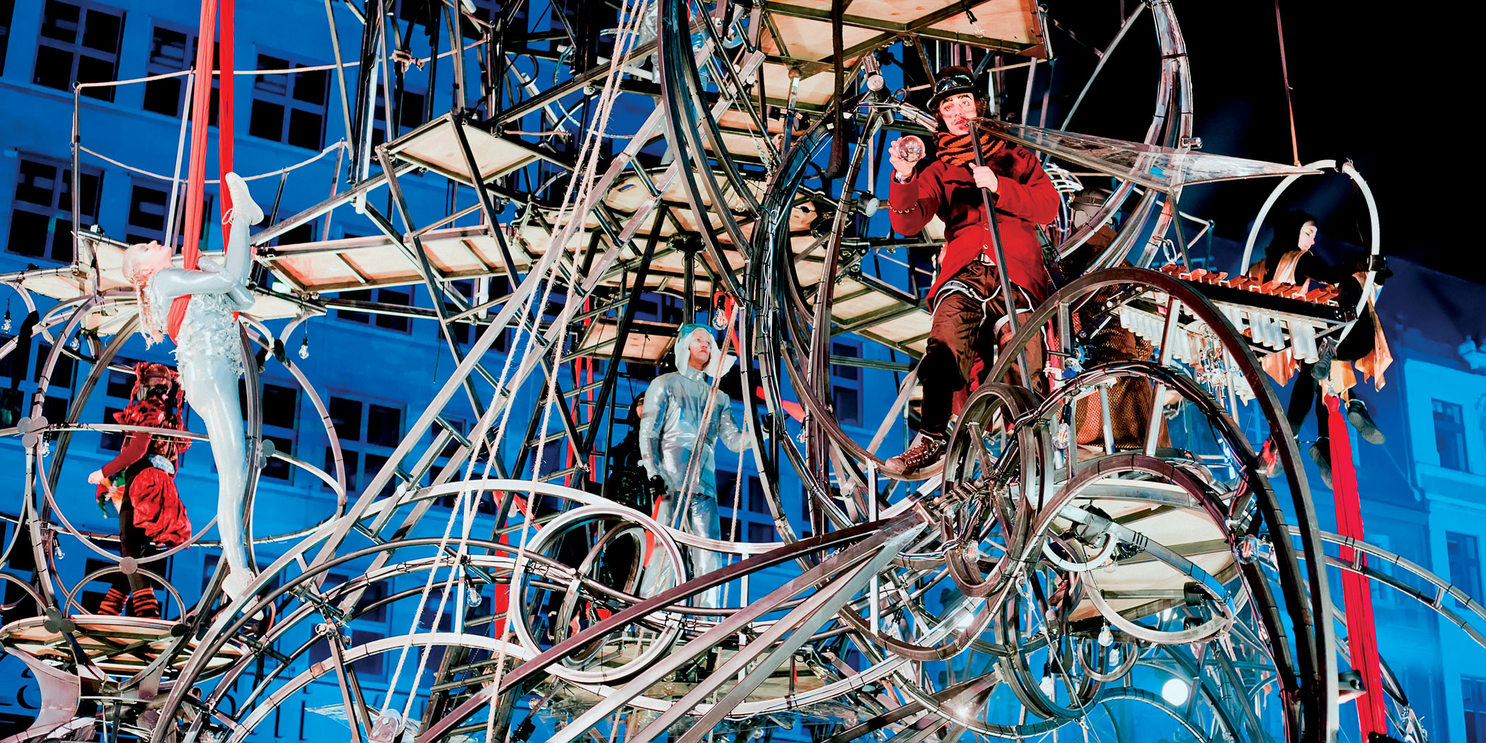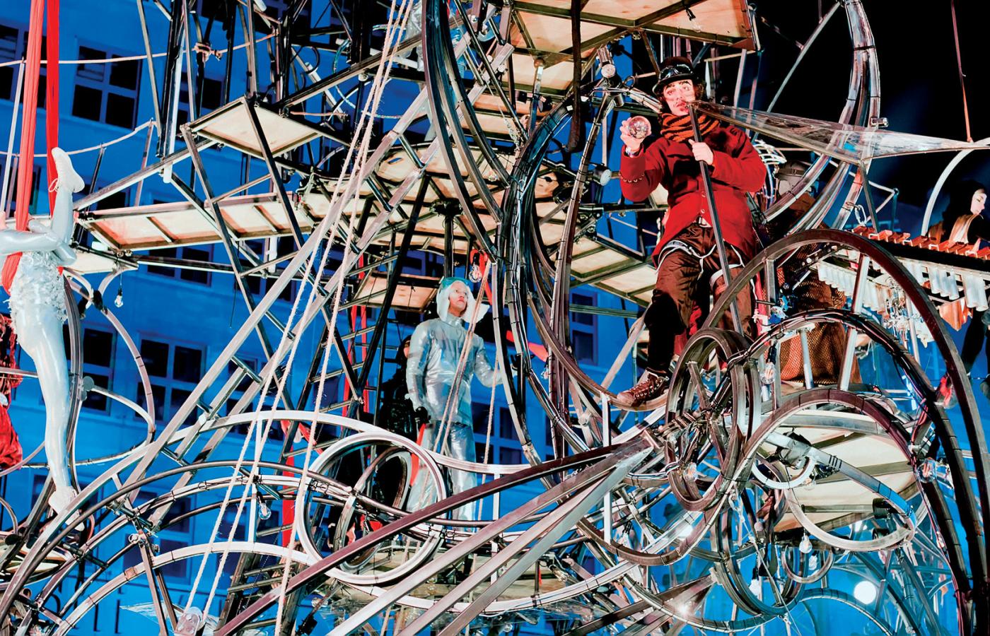 Wraz z 12 innymi więźniami z Zakładu Karnego nr 2 przy ul. Fiołkowej we Wrocławiu Zimny ciągnie więc za sznury kilkumetrową, podświetloną metalową konstrukcję, którą ożywiają akrobaci i muzycy. Symbolizuje ona budowanie tożsamości miasta i nowych relacji międzyludzkich po klęsce niemieckiego Festung Breslau. Konstrukcja jest częścią wychodzącego z czterech dzielnic Wrocławia pochodu mieszkańców, którego finał – widowisko „Przebudzenie” – otworzył w niedzielę obchody Europejskiej Stolicy Kultury.