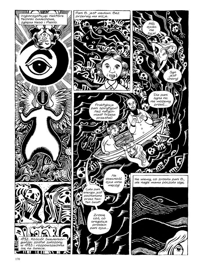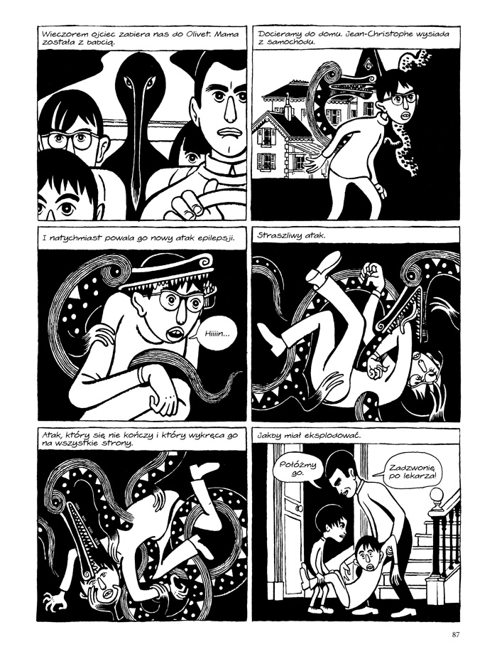 Rodzice szukali ratunku u lekarzy, medium, specjalistów od medycyny alternatywnej i gdziekolwiek się tylko dało. W „Rycerzach św. Wita" epilepsja ma swoją formę, przypomina średniowiecznego smoka, niemal biblijnego Lewiatana, który oplata dziecko i powoduje ataki. W całym komiksie David B. częściej chorobę wizualizuje, niż o niej opowiada, bo słowa wydają się nieodpowiednie i mało trafne.