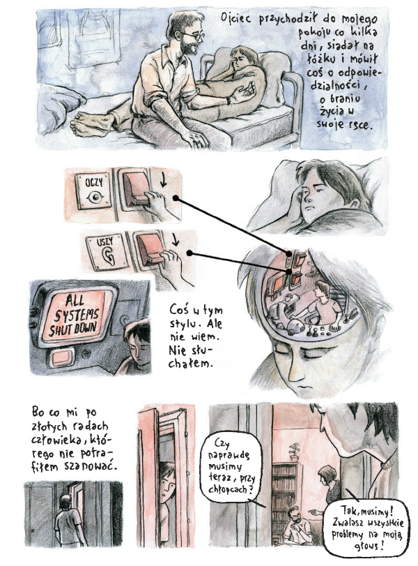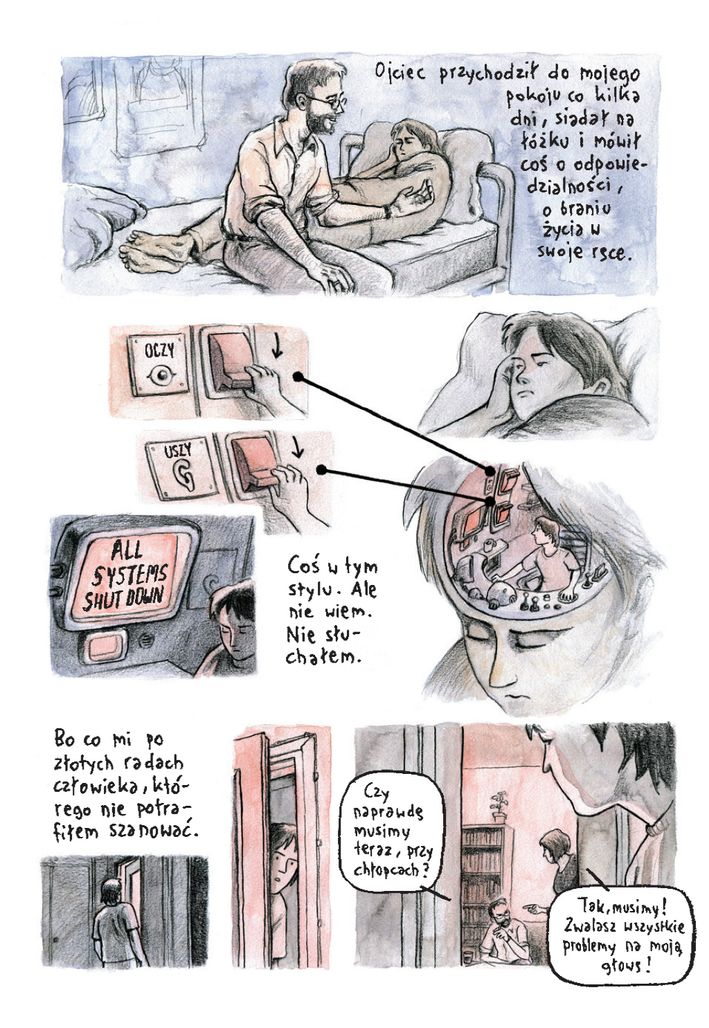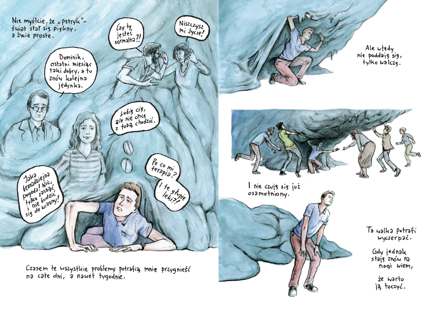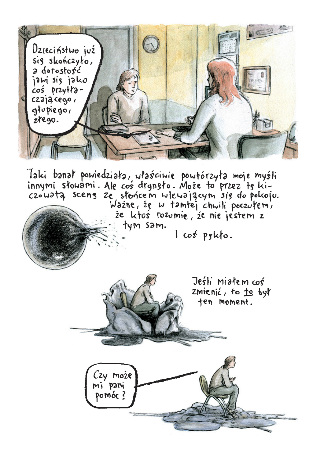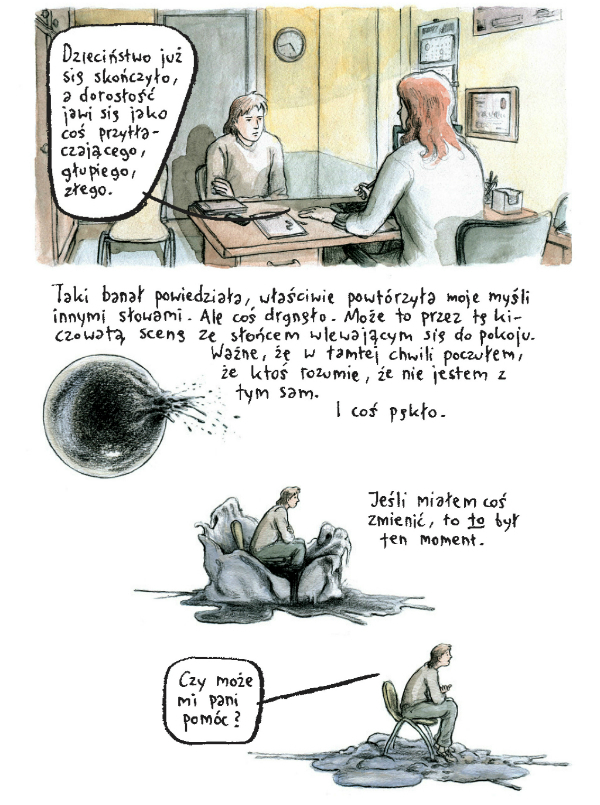 Artyści konsultowali jednak swoją historię z nastoletnimi pacjentami warszawskiego szpitala psychiatrycznego i wiele wizualnych metafor przestawionych w komiksie to efekt tych konsultacji. Komiks ma pomóc młodym ludziom przełamać lęk przed pójściem do psychiatry i faktycznie w bardzo obrazowy, klarowny sposób przedstawia objawy depresji, a także pomaga ją zrozumieć.