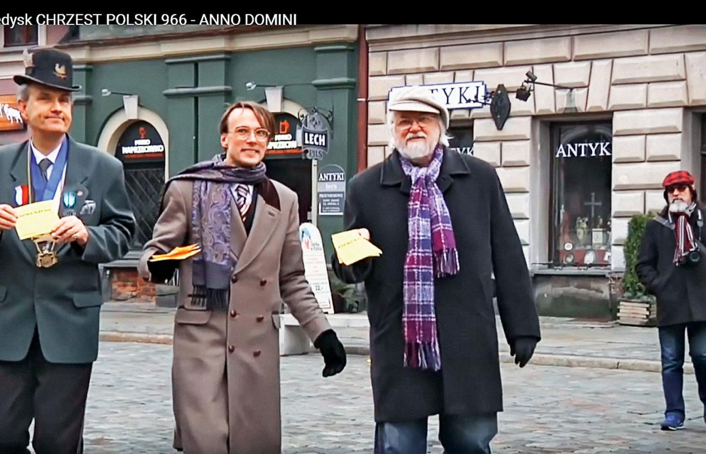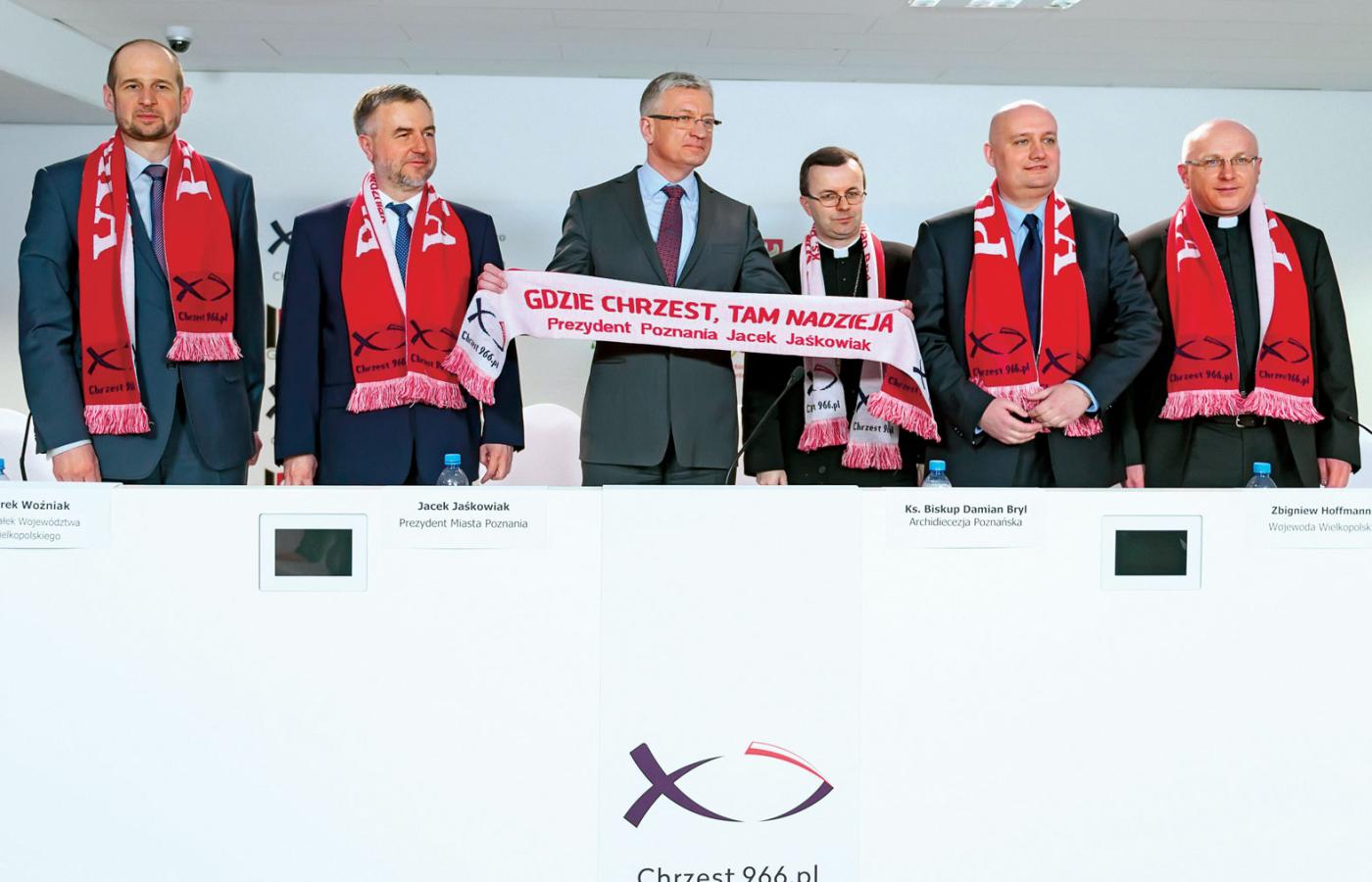 Chrzest sprzed 1050 lat świętować będziemy w tym roku na dwa sposoby. Pierwszy to oficjalne obchody – jak je nazwano – kościelno-państwowe. Będą krótkie (14–16 kwietnia), ale intensywne. Odbędą się w dwóch miastach: Gnieźnie i Poznaniu. Z pełnym zaangażowaniem Andrzeja Dudy, który będzie podążał za hierarchami przez wszystkie te dni i modlił się w podziękowaniu za słuszną decyzję Mieszka I. Na koniec trzydniówki odbędzie się wielki finał na poznańskim stadionie, w ramach którego zostanie wystawiony (gratulacje za niekonwencjonalny pomysł) musical „Jesus Christ Superstar” z 65-letnim Markiem Piekarczykiem w roli 33-letniego Syna Bożego. Uroczystość poprowadzi aktor Radosław Pazura, a dla uczestników przygotowano różne gadżety, m.in. szaliki kibicowskie (w końcu to stadion) z orłem i datą „966”. Atrakcją ma być także odśpiewanie przez 1050 chórzystów jubileuszowego hymnu „Gdzie chrzest, tam nadzieja”, skomponowanego w rytmie poloneza przez Leopolda „Poldka” Twardowskiego. Swą gotowość do wykonania hymnu zgłosili już m.in. Natalia Niemen, Robert Friedrich Litza z Arką Noego, Piotr Baron i Marcin Pospieszalski.