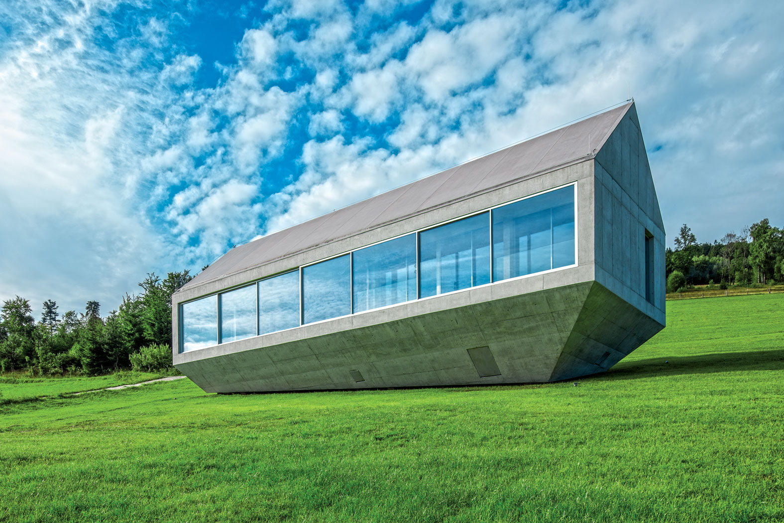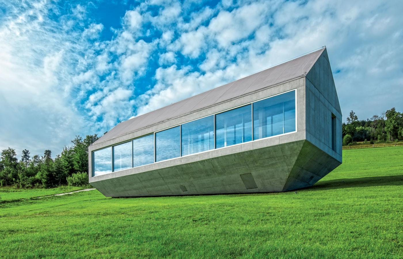 Robert Konieczny od lat znany jest z niekonwencjonalnych (choć zawsze niezwykle funkcjonalnych) projektów domów jednorodzinnych. Gdy postanowił zbudować dom dla siebie, zaskoczył… maksymalną prostotą. Dwuspadowy dach (wymogi lokalnych zapisów), pozbawiona jakichkolwiek detali, monolityczna bryła i charakterystyczny „dolny” dach sprawiają, że całość realizacji ogarnia się jednym spojrzeniem.