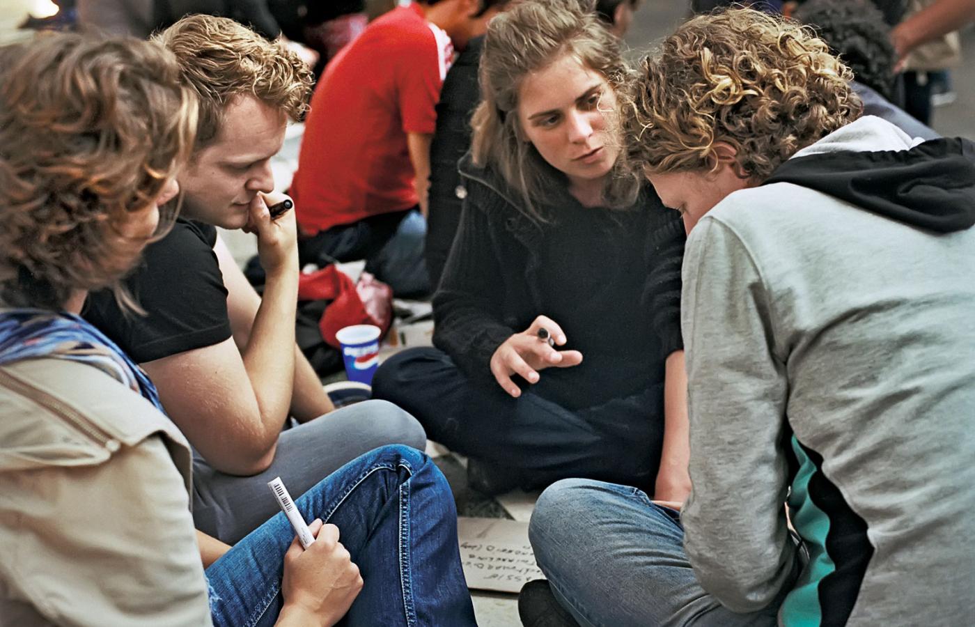 Mają w swoich społecznościach przestrzeń, w której opowiadają sobie historie ze swojej przeszłości i rozmawiają. To miejsce bez krzeseł. Pozycja leżąca zmienia perspektywę, ułatwia komunikację, łatwiej w niej o kompromis niż na przykład w promowanym przez naszą kulturę dialogu w pozycji stojącej. Osoby stojące twarzą w twarz mogą właściwie tylko albo walczyć, albo się kochać, nie ma niczego pośrodku. Podczas „Agonistycznej rozmowy” zaczynamy od dwóch grup stojących naprzeciw siebie, by w drugiej części kontynuować rozmowę w pozycji leżącej. Efekty są bardzo ciekawe.