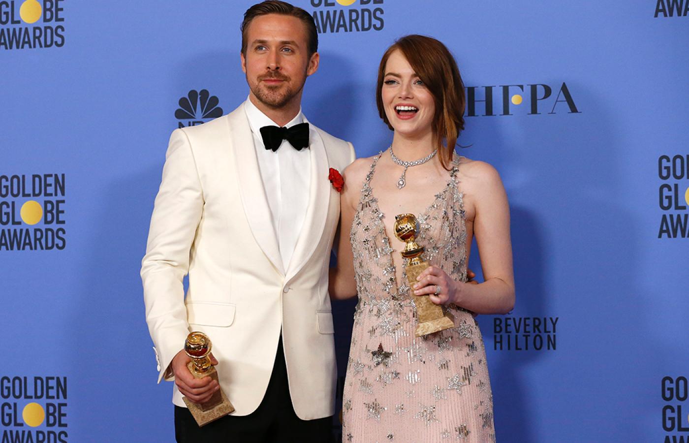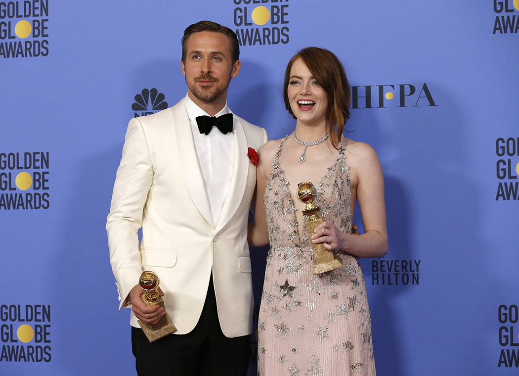 Najlepsza aktorka w filmie komediowym lub musicalu: Emma Stone za rolę w musicalu „La La Land” (pozostałe nominowane: Annette Bening za „20th Century Women”, Lily Collins za „Rules Don’t Apply”, Hailee Steinfeld za „The Edge of Seventeen”, Meryl Streep za „Boską Florence”)