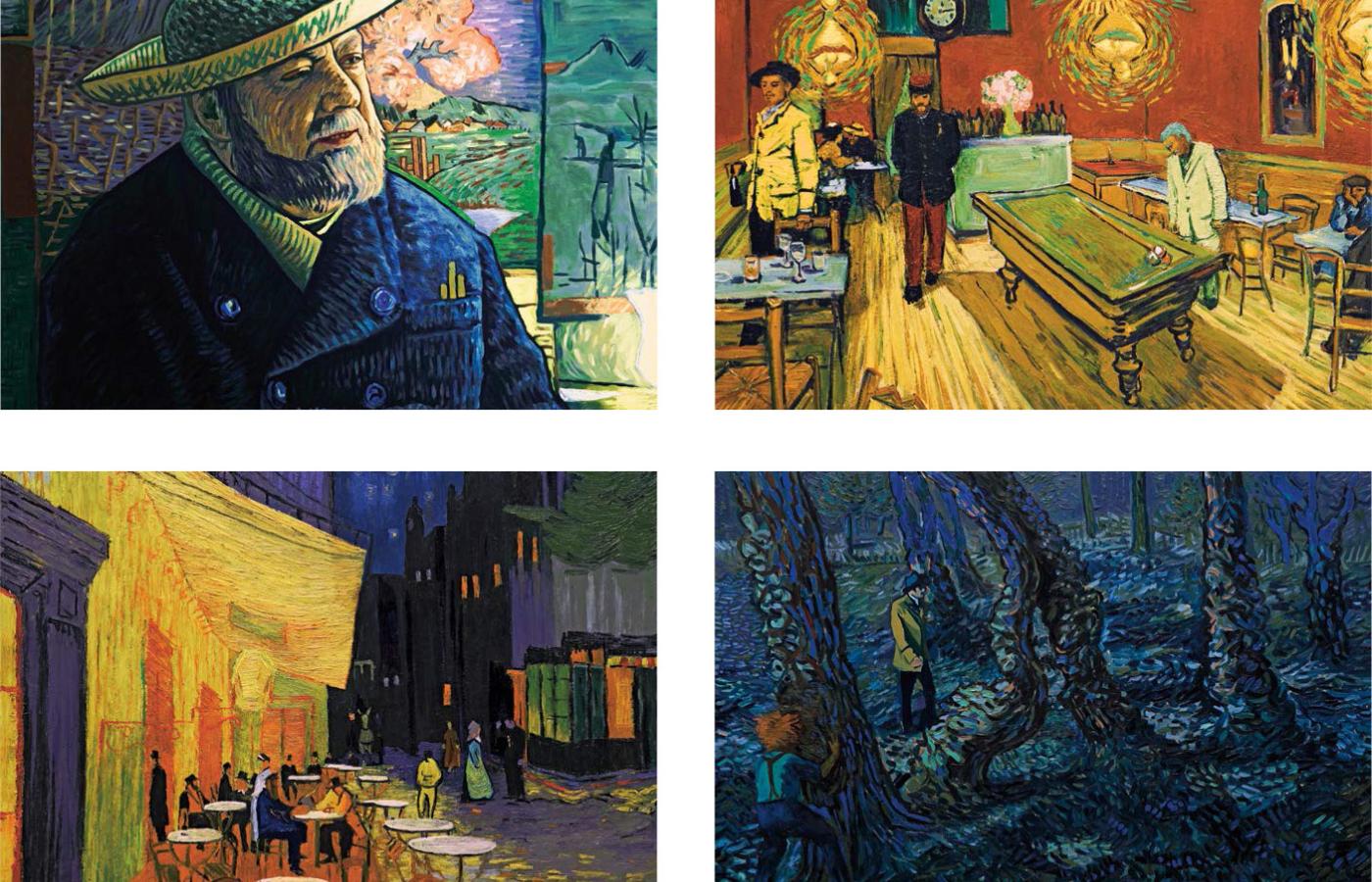 W trakcie wieloletniego procesu powstawania filmu zajmowało się nim w sumie 125 malarzy. Do finalnej wersji weszły ostatecznie 94 obrazy Vincenta van Gogha (w formie bardzo zbliżonej do oryginałów), a kolejnych 31 zostało częściowo lub znacząco przekształconych. Są wśród nich głównie portrety znajomych Vincenta z ostatniego okresu jego życia, pejzaże Prowansji z okolic Arles i Auver-sur-Oise, martwe natury oraz słynny Żółty Dom, gdzie próbował założyć dwuosobową komunę artystyczną z Gauguinem.
