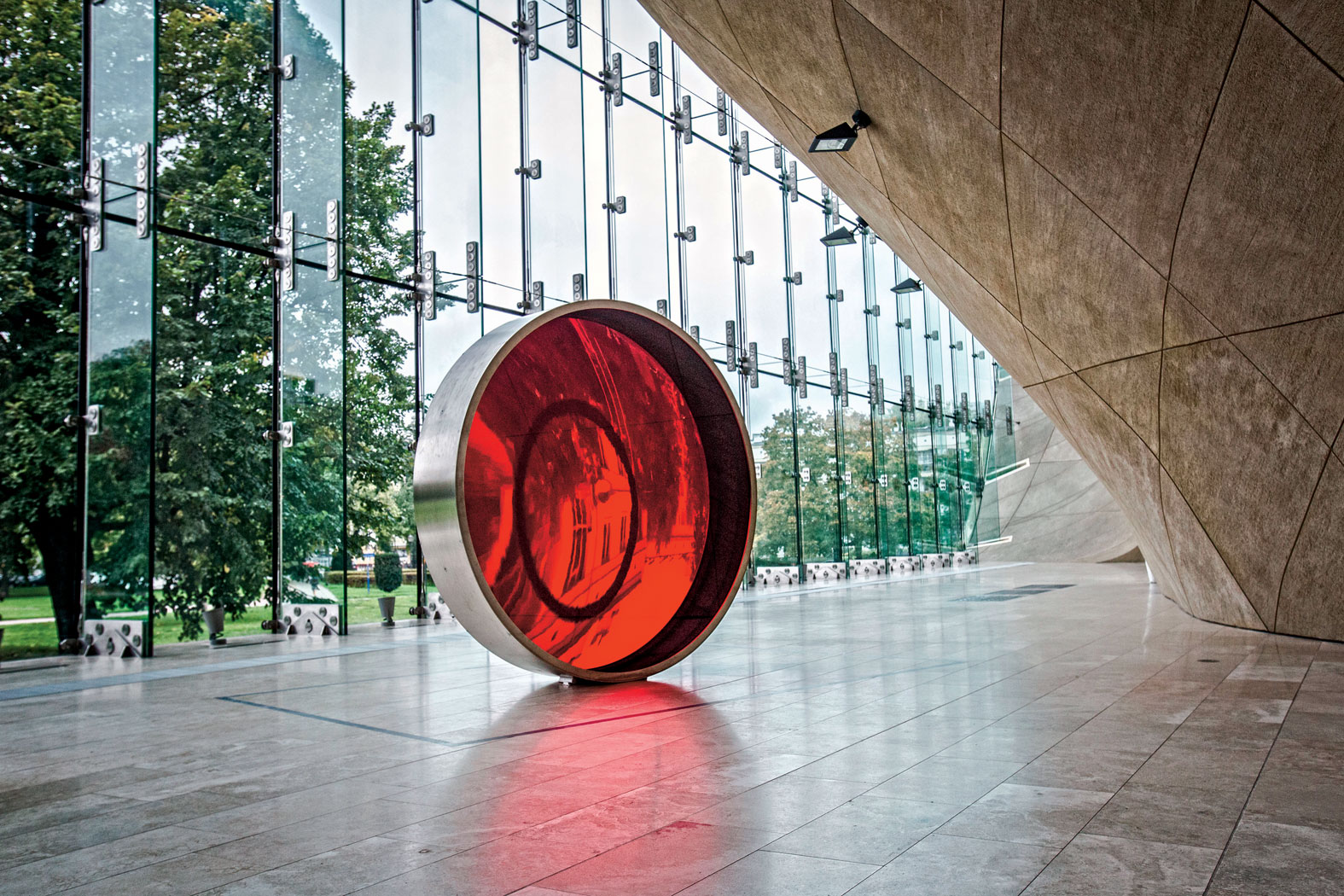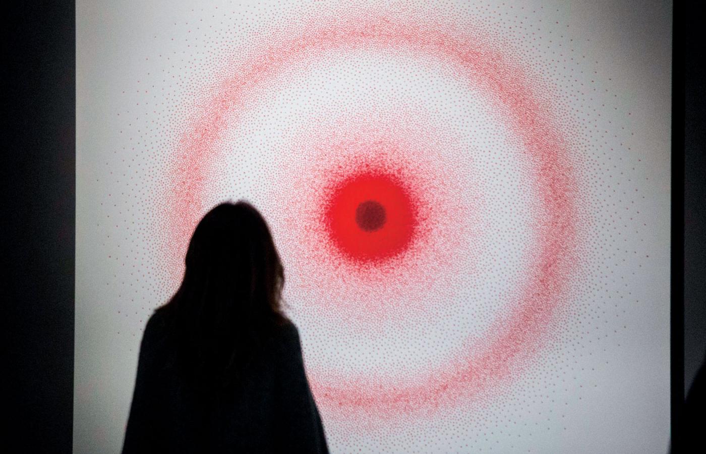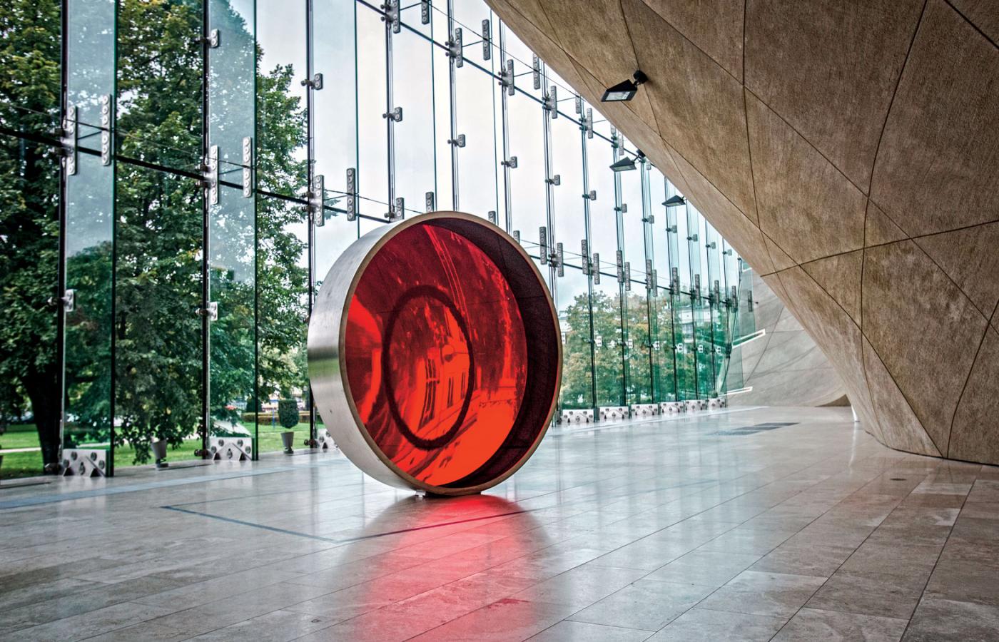 Na wystawie brakuje tak radykalnych prac, za to jest kilka, które stanowią interesujący kontrapunkt do historycznej narracji (m.in. grupa Twożywo, Bogna Burska, Piotr Uklański, Eliza Proszczuk, Moshe Gershuni). Ale symboliczną kwintesencją tej ekspozycji pozostaje z pewnością rzeźba (obiekt) słynnego Anisha Kapoora „Blood Cinema”. To potężne koło wypełnione krwistoczerwoną, do złudzenia przypominającą kolor krwi soczewką. Możemy przez nią oglądać innych ludzi stojących po jej drugiej stronie, ale też świat zewnętrzny za oknami. Możemy się też sami w niej przejrzeć.