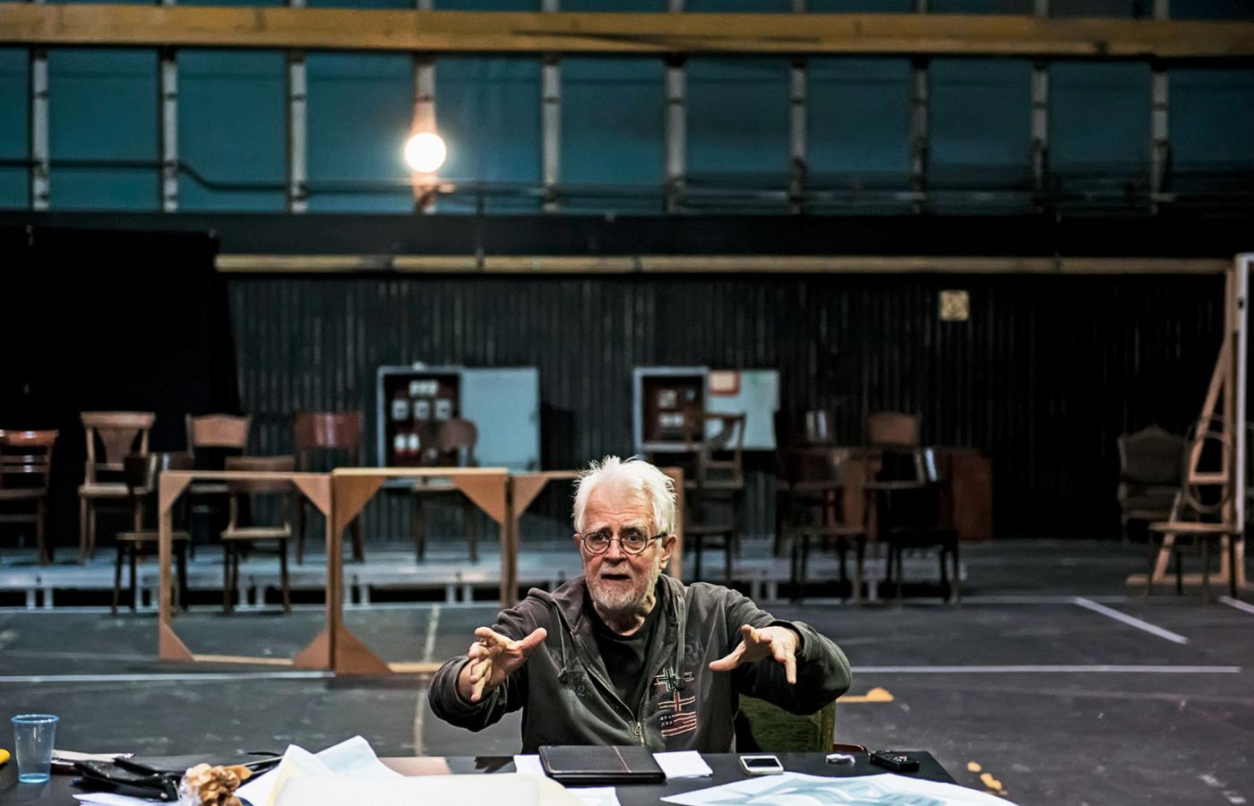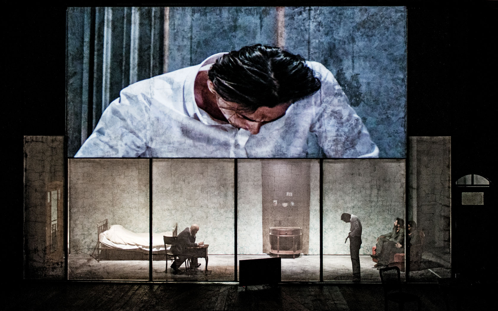 Scenografia nie pozostawia złudzeń – wielki, pusty pokój z drzwiami i oknem, w środku stół i krzesła to przestrzeń emblematyczna dla teatru Lupy. Nowością jest za to telewizor. Pani Grubach (Bożena Baranowska) i Franz K. (Andrzej Kłak, grana przez niego postać łączy cechy Józefa K. i Franza Kafki) oglądają jeden z programów publicystycznych, w którym politycy dyskutują o problemie dzikiej reprywatyzacji. Bryluje Ryszard Czarnecki z PiS, opisuje marny stan polskiego sądownictwa, co ma być kolejnym argumentem za powołaniem komisji śledczej do spraw afery reprywatyzacyjnej. „Proces” Lupy dzieje się tu i teraz.