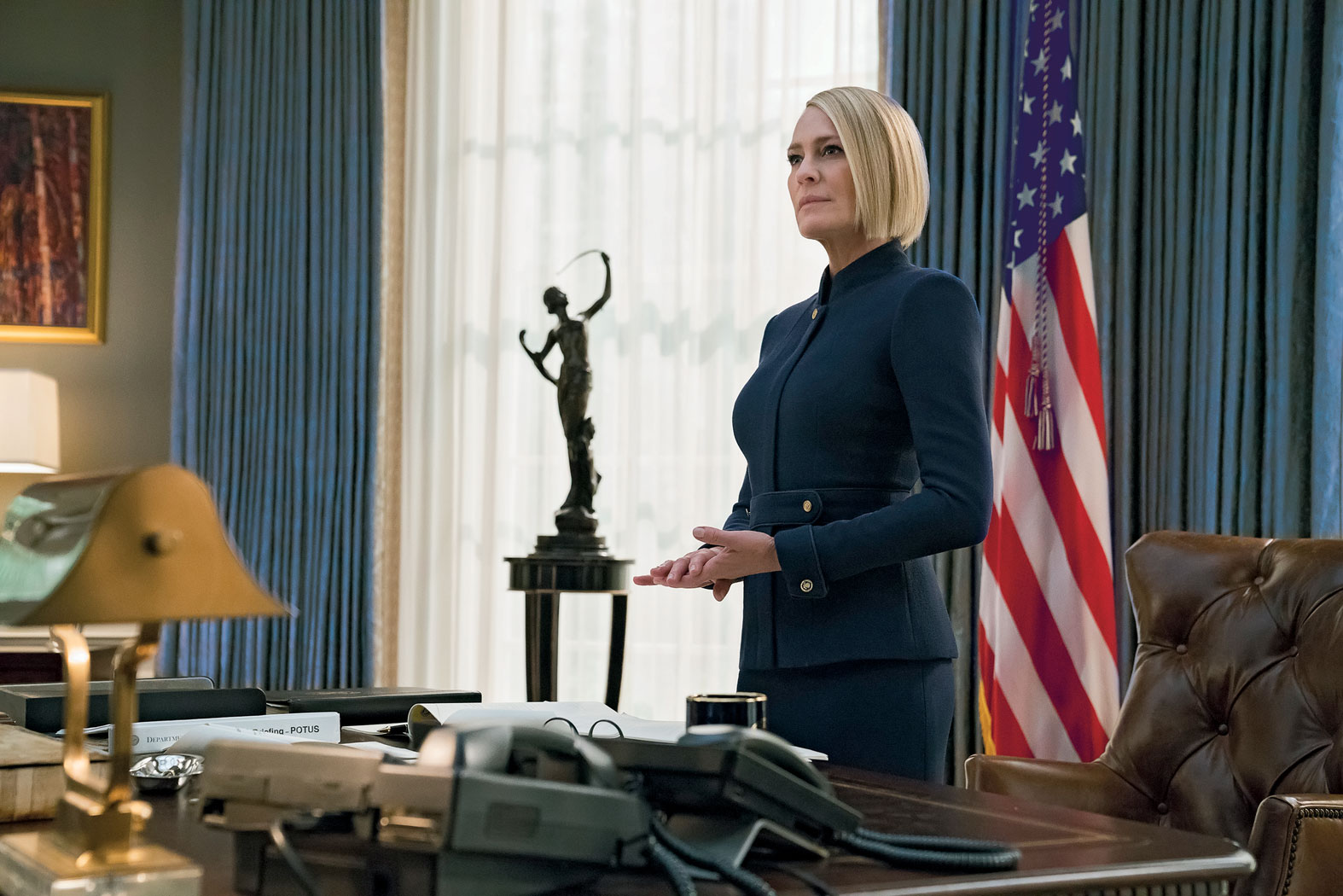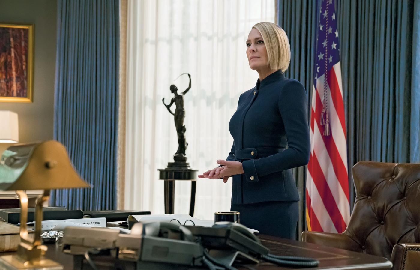 Nie chodzi tylko o miliony wydane na scenografię, żeby odzwierciedlała luksus życia waszyngtońskich elit, świata polityki i biznesu. Odwzorowanie m.in. Gabinetu Owalnego i innych, niedostępnych dla zwykłego oglądacza telewizyjnych wiadomości przestrzeni Białego Domu miało dać widzom debiutującego w 2013 r. serialu złudzenie zaglądania za kulisy prawdziwej władzy. Sezon „House of Cards”, w którym Frank Underwood startował w wyścigu o fotel prezydenta USA, promowany był serią plakatów wyborczych wzorowanych na tych towarzyszących zwycięskim kampaniom prawdziwych prezydentów USA. Najbardziej wymowna była parodia plakatu Lyndona B. Johnsona z hasłem „LBJ for USA”. Z inicjałami Franka kojarzyła się raczej obscenicznie: „FU for USA”. Dobrze przy tym oddając filozofię rządzenia bohatera i większości sportretowanych w serialu polityków obu głównych partii.