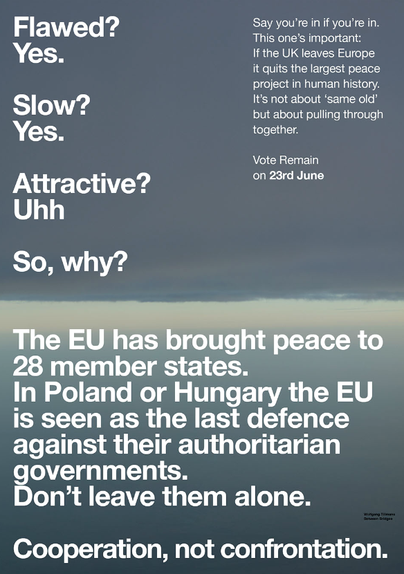 „The EU has brought peace to 28 member states. In Poland or Hungary the EU is seen as the last defence against their authoritarian governments. Don’t leave them alone”.
