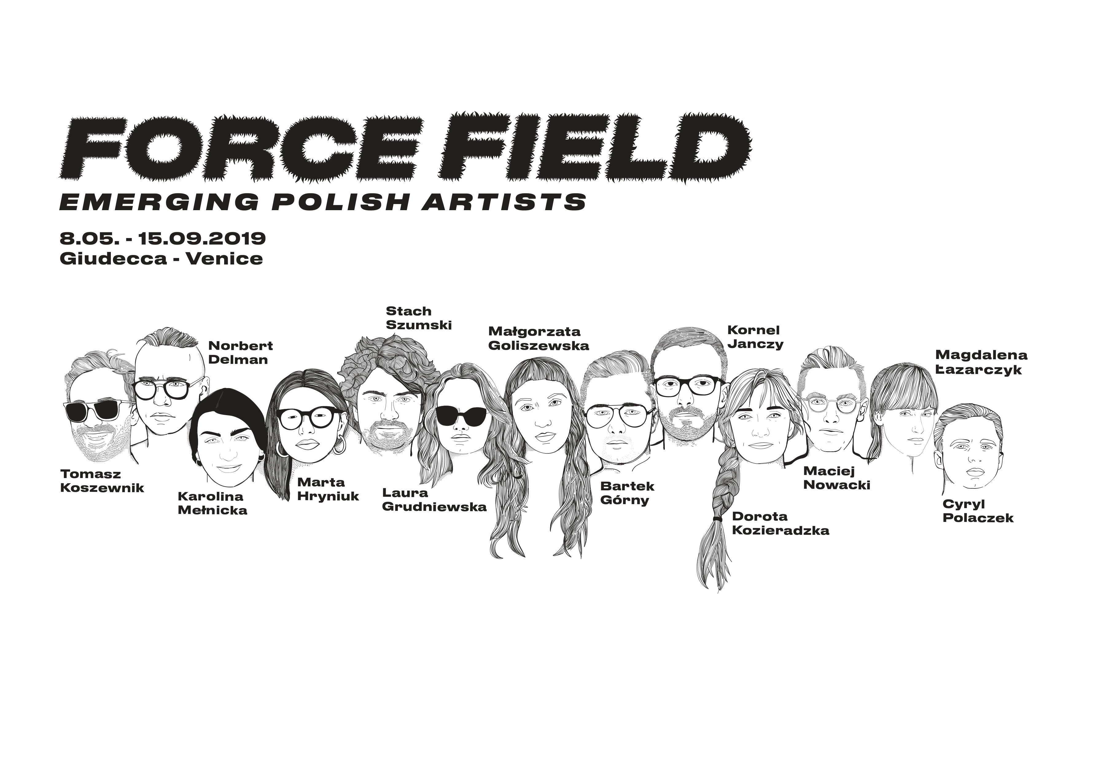 Wystawa Force Field to pokaz energii i śmiałości aktualnej polskiej sztuki. Przedstawiane prace składają się na zajmującą i wielowymiarową narrację o teraźniejszości, przeszłości i przyszłości. W niezwykłym, eksperymentalnym przedsięwzięciu, artyści przedstawiają m.in. realizacje video, instalacje, rzeźby, malarstwo oraz działania performatywne.