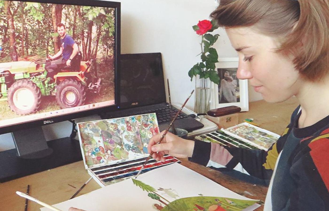 To jest ciągły proces, który trwa i daj Boże będzie trwał do moich 90. urodzin. Myślę, że jeśli chodzi o budowanie jakiegoś własnego stylu, to na pewno nie polecam nikomu przeglądania nagminnie prac innych ilustratorów. To jest plaga ostatnich lat. Młodzi ludzie siedzą teraz ciągle na Facebooku i Behance, oglądają cudze ilustracje i powstaje z tego mnóstwo plagiatów, słabych podróbek. Dla mnie takim kluczowym momentem było znalezienie odpowiedniej techniki. Obecnie używam akwareli, ale dosyć gęsto kładzionej. I ta akwarela to był przełom, wcześniej pracowałam kredkami. Dopiero na kursie ilustracji we Włoszech kilka lat temu kazano mi posłużyć się akwarelami. A od dziecka nie znosiłam malować farbami. Przemęczyłam się więc ten jeden dzień, a potem wróciłam do Polski i te akwarele jakoś zaczęły wkradać się do moich prac. W końcu je zdominowały. A jeśli chodzi o inspiracje, to na pewno natura, ale także malarstwo.