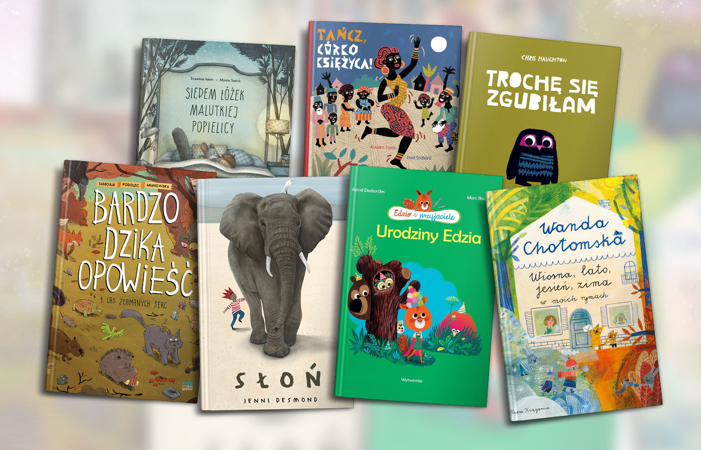 Jenni Desmond, „Słoń”, Wydawnictwo Łajka, Sopot 2019. Po słynnej książce o niedźwiedziu polarnym Jenni Desmond przybliża młodemu czytelnikowi sylwetkę słonia. Pokazuje, jak wiele wspólnego ma ten wielki ssak z człowiekiem (życie społeczne, doskonała pamięć), a także jak delikatną potrafi być istotą mimo gigantycznej w końcu postury. Desmond potrafi łączyć poważną opowieść z lekką kreską i dużą wrażliwością.