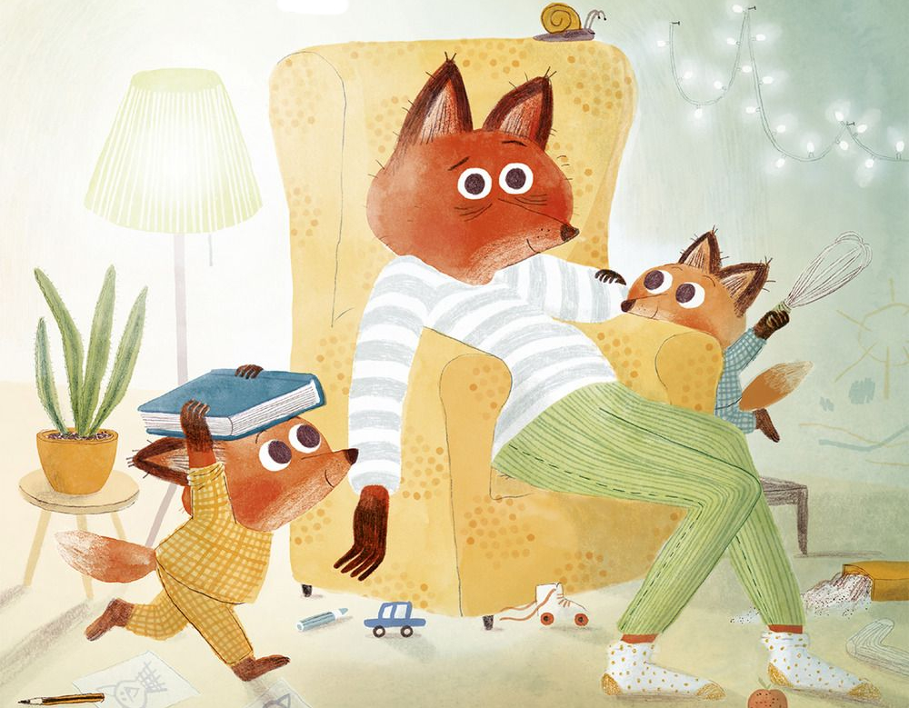 Marta Altés, „Jeszcze pięć minut”, Wydawnictwo Tako, Toruń 2019. Dwa liski i ich tata zmagają się z codziennością: wczesnym śniadaniem, wyprawą na basen i kinderparty. Ojca i dzieci łączą spędzone chwile, ale kompletnie dzieli poczucie czasu. Rude urwisy odczuwają go zupełnie inaczej niż dorosły. Właśnie na tej różnicy Marta Altés opiera swoją historię, pełną sytuacyjnego humoru, ciepła, no i jak zawsze w jej przypadku uroczych rysunków. Styl Altés jest trochę słodki, pełen mocnych kolorów, a artystka garściami czerpie z języka komiksu, szczególnie z jego narracji.