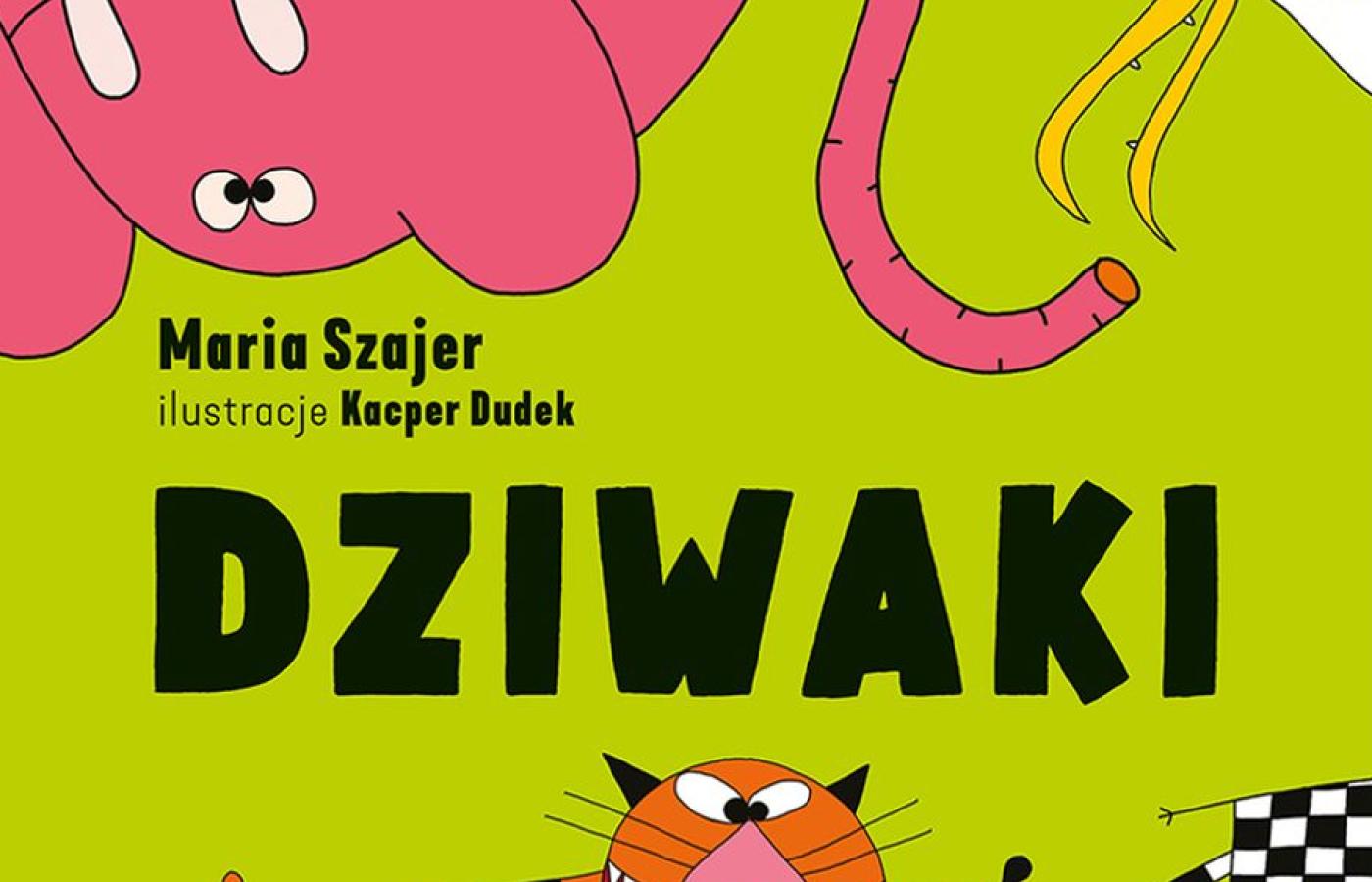 Maria Szajer (tekst), Kacper Dudek (ilustracje), „Dziwaki”, Wydawnictwo Bajka, Warszawa 2019. Surowe, wręcz punkowe, a zarazem niezwykle oryginalne rysunki Kacpra Dudka zna każde dziecko, które czytało przygody „Kotka Mamrotka” w czasopiśmie „Świerszczyk”.Tym razem rysownik wraz Marią Szajer zabiera małego czytelnika do domu przy ul. Dziwnej, gdzie mieszkają stworzenia kompletnie niepasujące do schematu. Słoń ma trąbę na pupie, zebra sierść w kratkę, a wieloryb jest tak mały, że mieści się w butelce. To zabawna opowieść o odmienności, ale napisana i narysowana w bezpretensjonalny i niedydaktyczny sposób.