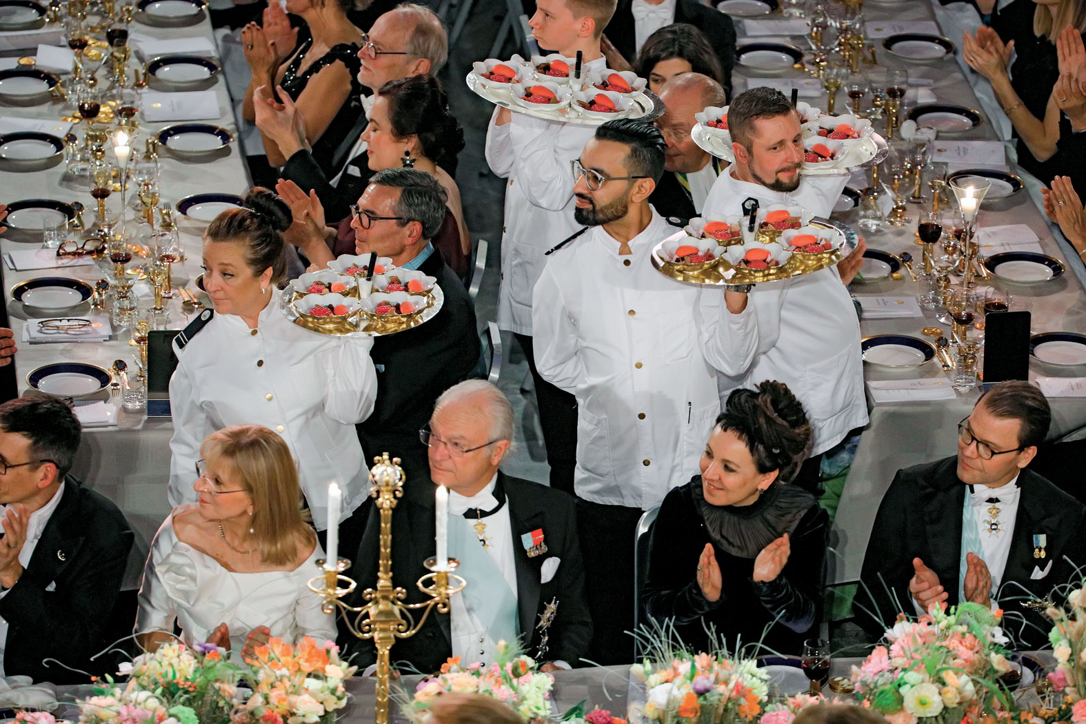 Szymborska pomyliła się w ukłonach, wywołując rzęsiste brawa – Tokarczuk udało się nie pomylić. Pisarka nie zajęła słynnego noblowskiego apartamentu na siódmym piętrze Grand Hotelu (było dwoje noblistów literackich i jeden apartament). Nie została też przyłapana na zdjęciu w hotelowym szlafroku. Szymborska zmieniła żelazny harmonogram tygodnia noblowskiego. Tokarczuk również nie była w stanie spełnić wszystkich zobowiązań, niektóre – tak jak ważne spotkanie z dziećmi z dzielnicy emigrantów Rinkeby – udało się zorganizować nieco później. Okazało się jednak, że to naginanie i lekkie łamanie protokołu nie kończy się skandalem. Agnieszka Holland na bankiecie fotografowała króla Karola XVI Gustawa, a Tokarczuk swobodnie z nim rozmawiała, idąc w orszaku w sztokholmskim ratuszu. To właśnie rozmowy z królem (tym samym!) tak bardzo obawiała się Szymborska. Tokarczuk była z niej bardzo zadowolona. Tłumacze, którzy obserwowali transmisję, zastanawiali się cały czas, co też Olga Tokarczuk z takim przejęciem mówiła królowi? Otóż namawiała go do zaprzestania polowań.