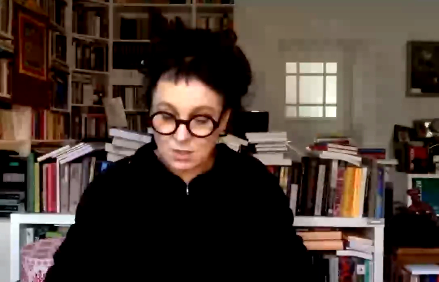 „Robię herbatę i za 10 min zaczynamy” – napisała Olga Tokarczuk przed swoim czytaniem, które naraz oglądało ok. 9 tys. osób, a później miało ponad 250 tys. odsłon, czyli najwięcej z dotychczasowych spotkań. Tokarczuk czytała opowiadanie ze zbioru „Gra na wielu bębenkach” zatytułowane „Próba generalna”. Wybrała je, bo opowiada o Polsce podczas kataklizmu, o ludziach zamkniętych w domach, którzy nie wiedzą do końca, co się dzieje, jakie są restrykcje, co im wolno, a co jest zagrożeniem. Świetnie oddała psychologiczną sytuację zamkniętej pary, która martwi się o córkę i ma siebie momentami dość. Oddała stan niepewności i oczekiwania na coraz gorsze wiadomości. Czasami literatura wyprzedza rzeczywistość i tak było w przypadku tego opowiadania sprzed 20 lat.