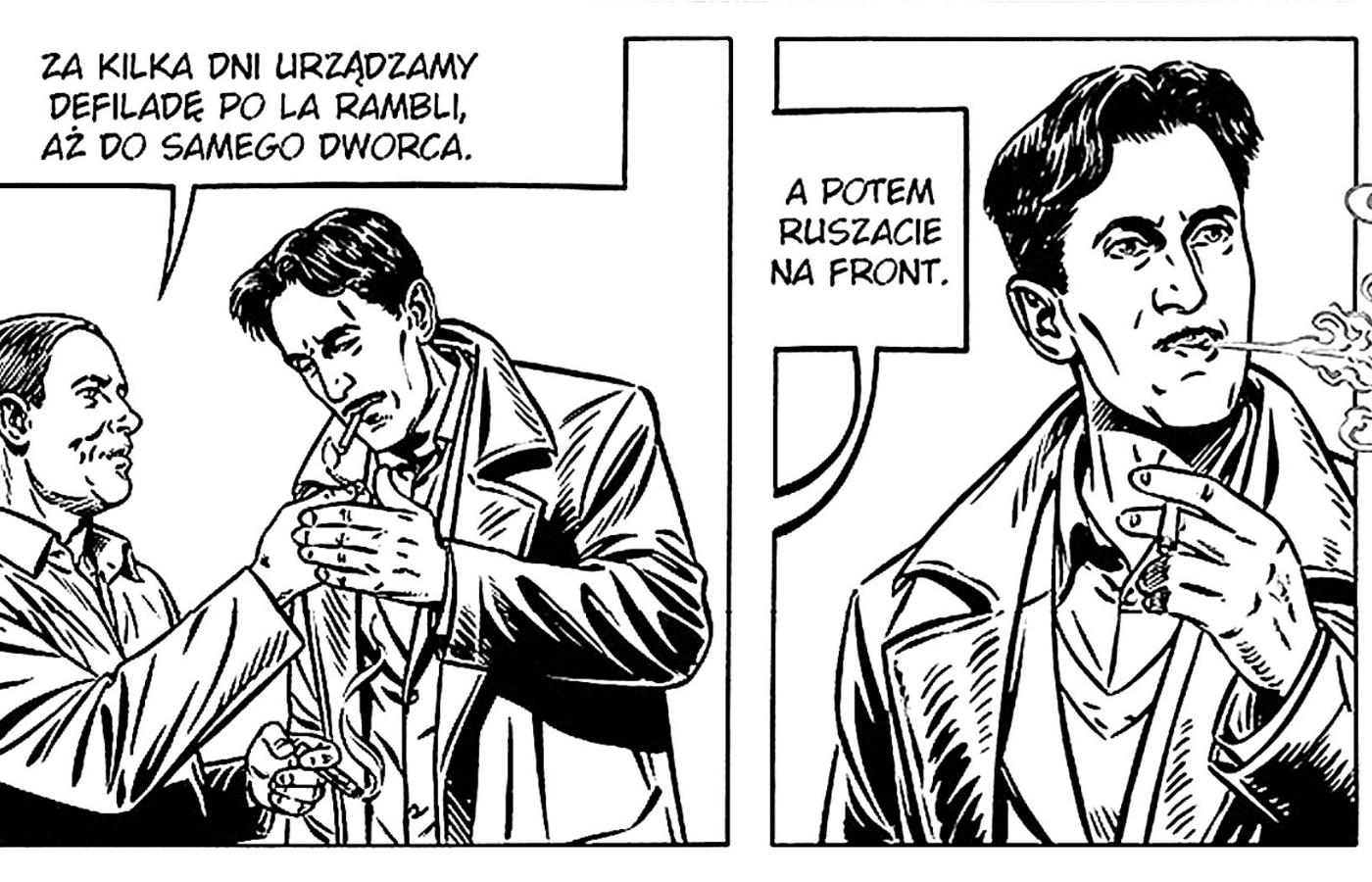 To scena zrodzona w wyobraźni scenarzysty Pierre’a Christina i rysownika Sébastiena Verdiera, twórców znakomitego „Orwella” – graficznej biografii brytyjskiego pisarza. Wymyślona, ale prawdopodobna, bo wśród licznych lektur Orwella znajdowały się również komiksy. Zaskakujące? Tasiemcowo długi podtytuł – „Absolwent Eton, policjant, robociarz, dandys, bojownik, dziennikarz, buntownik, powieściopisarz, ekscentryk, socjalista, patriota, ogrodnik, pustelnik, wizjoner” – przypomina, że Orwell był znacznie bardziej złożoną postacią, niż dzisiaj się nam wydaje. W powszechnej świadomości funkcjonuje jako autor dwóch antykomunistycznych powieści, zawłaszczany zarówno przez prawicę, jak i lewicę, tymczasem twórcy albumu przypominają, że pisarz był barwną, fascynującą, niejednoznaczną postacią.