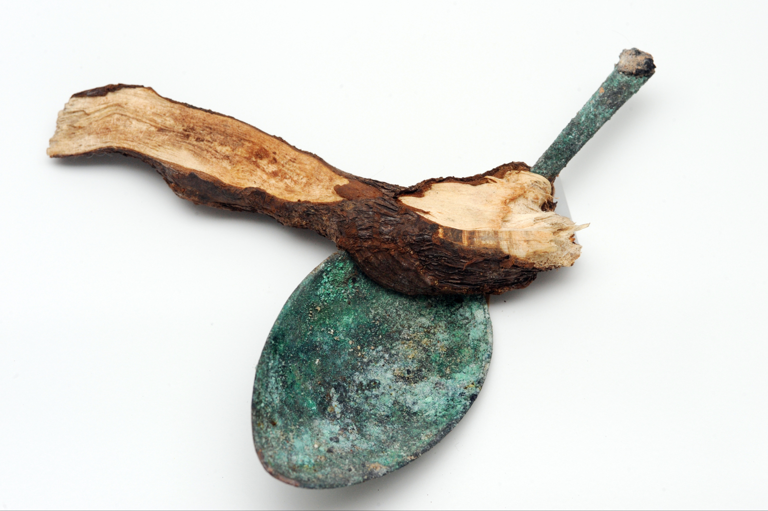 Łyżka zachowała kształt. Straciła tylko końcówkę rączki. Zyskała za to wielozielony osad, jest więc szlachetniejsza niż jej aluminiowe, biedniejsze siostry. Posrebrzana, srebrna? Nie da się sprawdzić, nie zdrapując nalotu. Trzeba byłoby się także pozbyć korzenia, który ją oplótł, a wtedy byłaby samotna. Zresztą stołu, na którym była kładziona, dawno już nie ma, więc nie ma też powodu, żeby pozbawiać ją tego nieoczekiwanego towarzystwa.