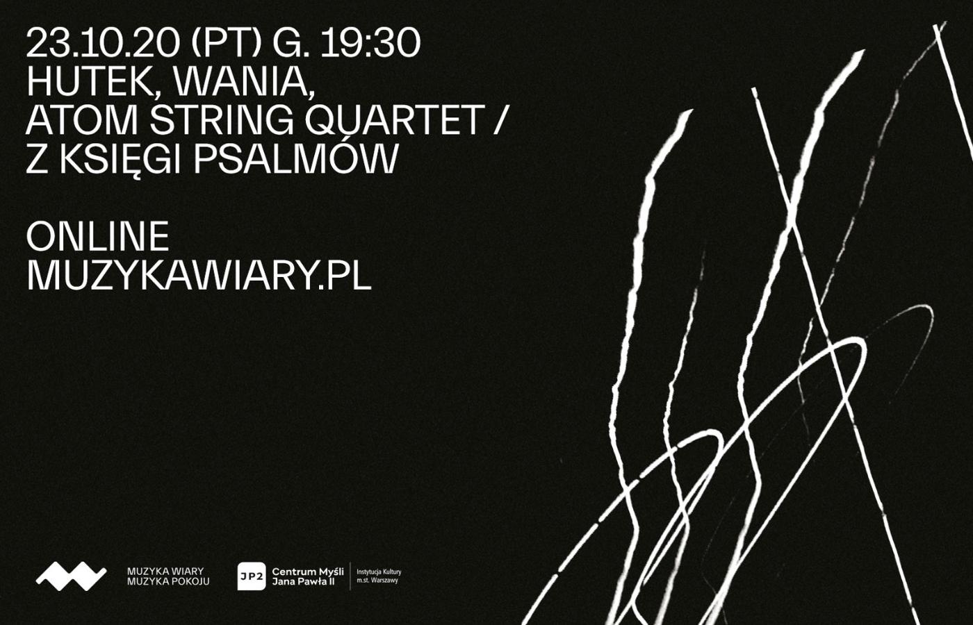 Koncertów warszawskiego festiwalu Muzyka Wiary – Muzyka Pokoju tym razem można posłuchać we własnym pokoju. Dla całego programu przewidziano transmisje online i radiowe. A program ten jak zwykle łączy wątki muzyki improwizowanej, współczesnej oraz nowego spojrzenia na wielką i odległą tradycję, a także nieszablonowo traktowanych inspiracji religijnych. Nie zabraknie eksportowej gwiazdy polskiej pianistyki, czyli Dominika Wani, tym razem wspólnie z Atom String Quartet akompaniującego jednak Małgorzacie Hutek, która jako poetyckie tworzywo potraktowała fragmenty biblijnej Księgi Psalmów. Festiwal zakończy z kolei kwartet Adama Bałdycha z nowymi opracowaniami utworów benedyktynki Hildegardy z Binden.