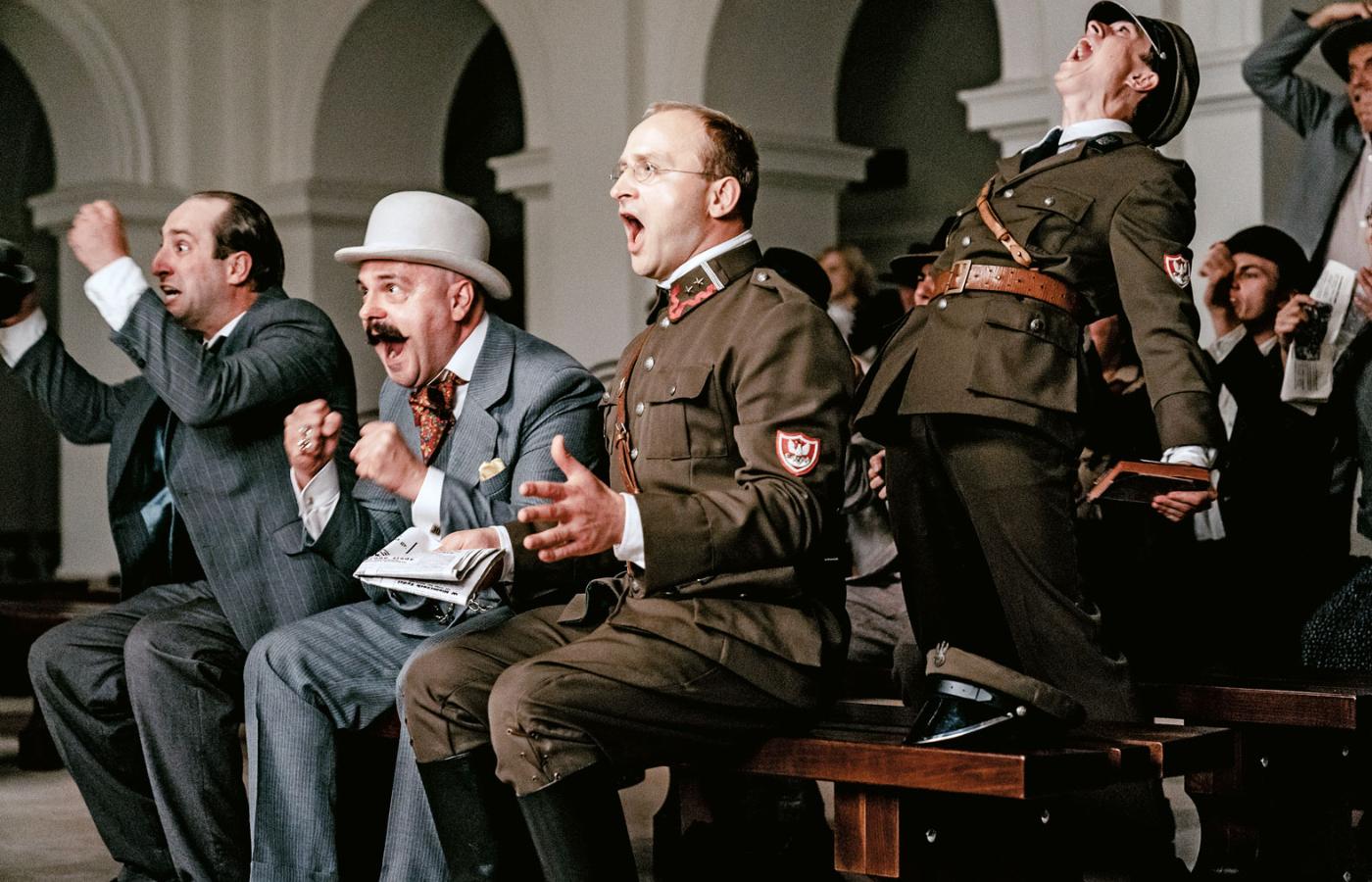 „Mało ich” – zauważa z satysfakcją Stanisława Tabaczyńska, patrząc przed siebie na zbliżających się pod transparentami z hasłami antysemickimi i nacjonalistycznymi członków ruchu ONR-Falanga, ze wzorowanym na Bolesławie Piaseckim Bronisławem Żwirskim na czele. Sama stoi w pierwszym rzędzie demonstracji socjalistów z PPS, pomiędzy kolegami z gangu: żydowskim bokserem Jakubem Szapiro i samym bossem Janem „Kumem” Kaplicą, który bez problemu łączy lewicową wrażliwość z wymuszaniem haraczy i mordowaniem niepokornych czy niewypłacalnych. Teraz, zadowolony, rzuca spod wąsa: „A jak! Naszych więcej”. A potem w ruch idą pałki, brzytwy i pistolety, po obu stronach padają trupy. Aż wjeżdża policja konna II Rzeczpospolitej, rozgania i aresztuje walczących z obu stron.