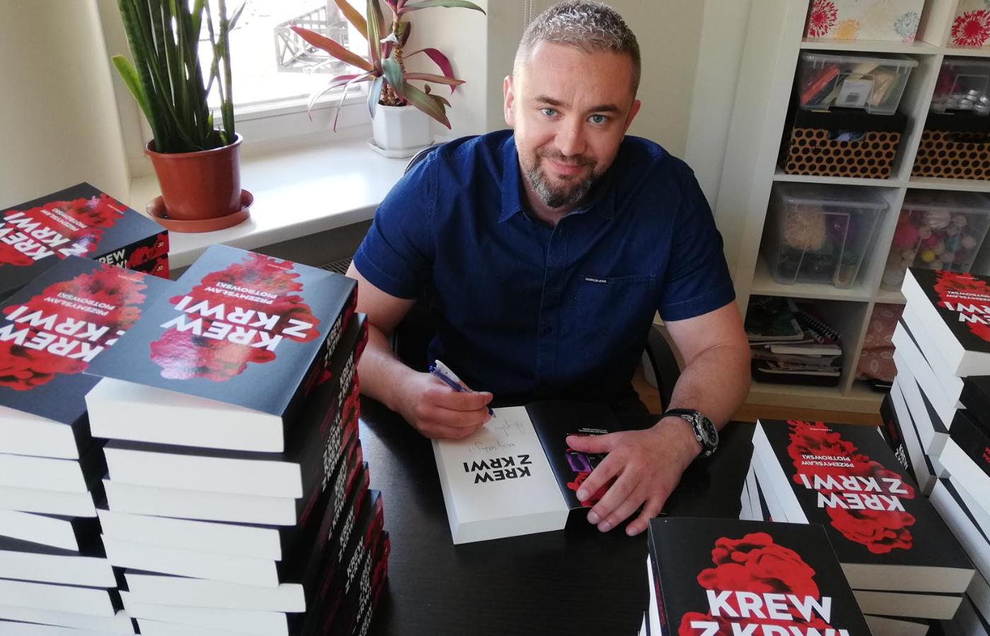 Pisząc „Krew z krwi”, pomyślałem, że warto poszukać tych emocji też gdzieś indziej. Trylogia była mocnym kryminałem z elementami thrillera, natomiast tutaj chciałem odnaleźć emocje w innym miejscu i starałem się, żeby one aż wylewały się z tej książki, żeby przesiąkły na wskroś karty tej powieści. I faktycznie słyszę opinie, że mi się to udało.