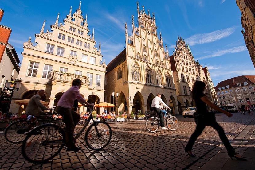 Po odkryciu Nowego Świata zmiany jakie zaszły w europejskiej gospodarce doprowadziły do ekonomicznego i politycznego osłabienia Kolonii. Przez kilka stuleci najważniejsze wydarzenia historyczne rozgrywały się gdzie indziej, np. w Münster. To kosmopolityczne miasto także może się pochwalić długą, ponad 1200-letnią historią. Jako siedziba biskupia, miasto hanzeatyckie, stolica pruskiej prowincji Westfalia, miasto uniwersyteckie czy nowoczesne centrum regionalne, Münster odgrywał ważną rolę w regionie, a niekiedy także daleko poza nim. W historii świata miasto zapisało się jednak głównie jako miejsce podpisania kończącego wojnę trzydziestoletnią pokoju westfalskiego. Przez pięć lat mocarstwa europejskie prowadziły negocjacje w Münster i Osnabrück, były one bardzo trudne: nie doszło do zawieszenia broni, działania wojenne trwały bez przerwy, nie istniały też uznane i sprawdzone na arenie międzynarodowej zasady prowadzenia takich pertraktacji. W końcu jednak udało się zakończyć wyniszczającą wojnę 24 października 1648 r. traktatem pokojowym. Do dziś Münster, jako miasto pokoju westfalskiego, jest nierozerwalnie związane z tym wydarzeniem. Negocjacje, które doprowadziły do zawarcia pokoju westfalskiego, są uważane za ważne kamienie milowe na drodze do europejskiego porządku i rozwoju dzisiejszego prawa międzynarodowego. W Münster warto zwiedzić historyczne stare miasto z pięknym ratuszem, gdzie kiedyś zawarto pokój, oraz monumentalny, barokowy pałac księcia biskupa. Miasto jest przyjazne dla rowerzystów, doskonałe na przejażdżkę na jednośladzie po zakątkach starego miasta, wspaniałych parkach i ogrodach.