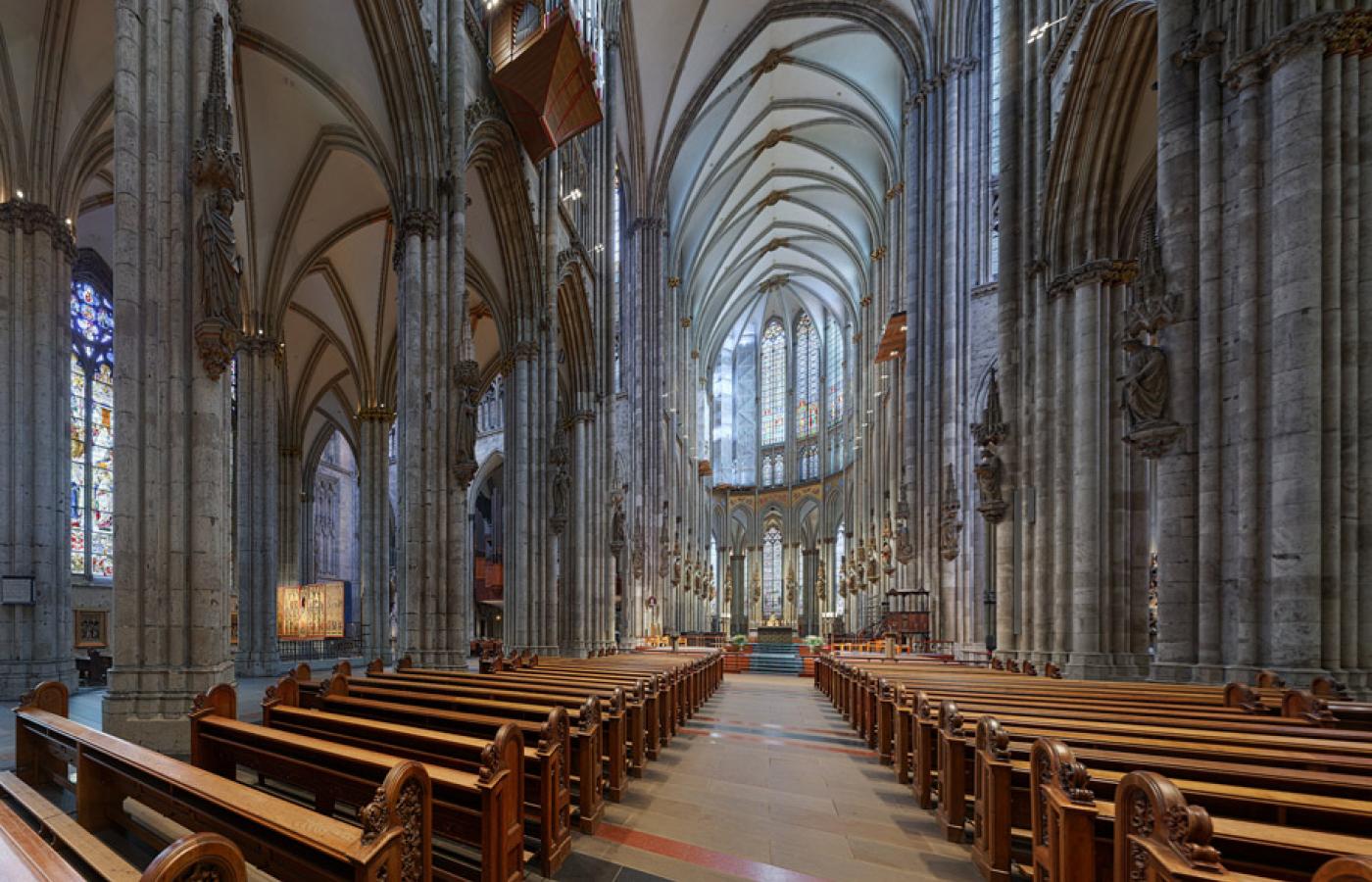 W średniowieczu stolicą regionu nad Dolnym Renem znów stała się Kolonia. Od 785 r. była siedzibą arcybiskupa, którego rozległe ziemie w XIII w. uzyskały rangę elektoratu Świętego Cesarstwa Rzymskiego. Arcybiskupi Kolonii długo byli potężnymi władcami świeckimi. W 1288 r., po przegranej bitwie pod Worringen, stracili wprawdzie świecką władzę nad miastem Kolonią, Dolną Nadrenią i południową Westfalią, jednak formalnie wolnym miastem Rzeszy Kolonia stała się dopiero w 1475 r. Arcybiskup Rainald w 1164 r. sprowadził do niej relikwie „świętych Trzech Króli”, dzięki czemu miasto stało się jednym z najważniejszych celów pielgrzymek Europy. Pielgrzymów było tak wielu, że nie mieścili się w starej katedrze, więc w 1248 r. arcybiskup Konrad von Hochstaden rozpoczął budowę nowej monumentalnej świątyni w stylu gotyckim. Budowa trwała z przerwami do 1880 r. Efekt jest imponujący – to druga co do wielkości budowla gotycka na świecie, prawdziwy symbol Kolonii.