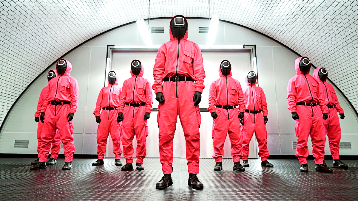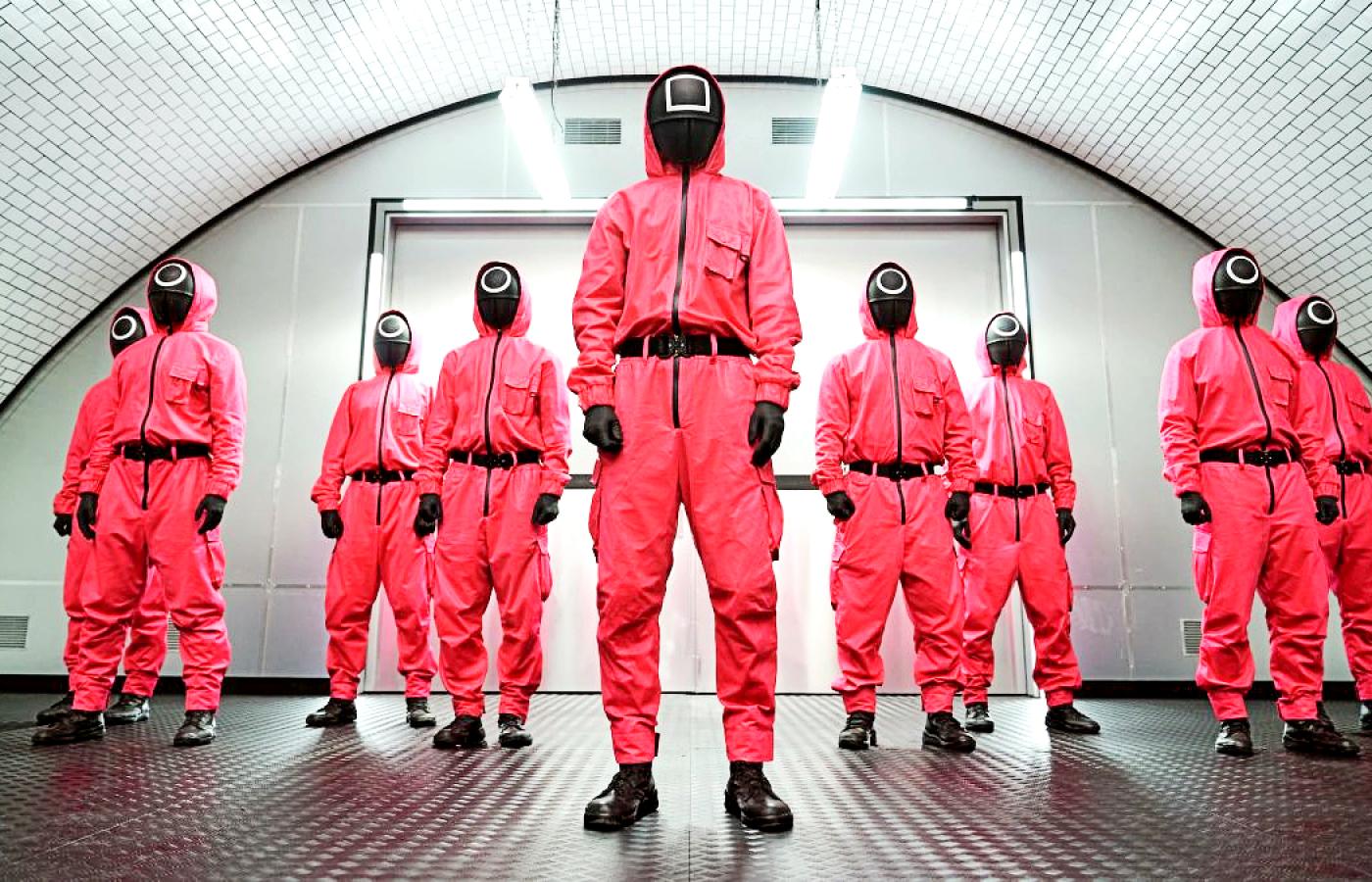 Tymczasem ogląda się Netflixa; prezentowany wycinek z bogatej i wciąż rosnącej biblioteki produkcji własnych, współprodukowanych (i obrandowanych logo serwisu) i zakupionych od stacji telewizyjnych walczy o uwagę odbiorcy w przesyconym mediami świecie. Aplikacja nie ma wiele czasu, zanim znudzony potencjalny netflixowicz nie przełączy się na TikToka (to tam odpływa największa baza konsumentów treści wideo). Serial czy film musi z miejsca się sprzedać – czymś, o czym algorytm już wie, że to lubimy, albo czymś, co ma memetyczny potencjał. Świetnie pokazał to „Dom z papieru” – charakterystyczna maska Salvadora Dalego stała się wręcz znakiem rozpoznawczym nie tylko serialu, ale samego Netflixa. „Squid Game” wyróżnia się od razu – przedziwna lalka, zakapturzone postacie, grupa ludzi w zielonych kombinezonach… to wszystko z miejsca intryguje.