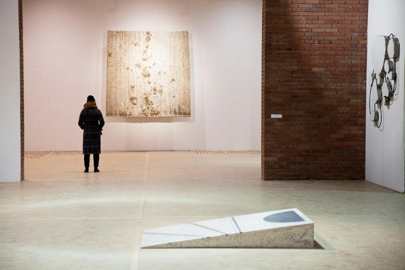 Na ścianie po prawej praca Moniki Sosnowskiej „Gruz” / „Rubble”, 2018, z cyklu „Miejskie kwiaty” / „Urban Flowers”, praca dzięki uprzejmości / courtesy Galerie Capitain/Köln/Germany