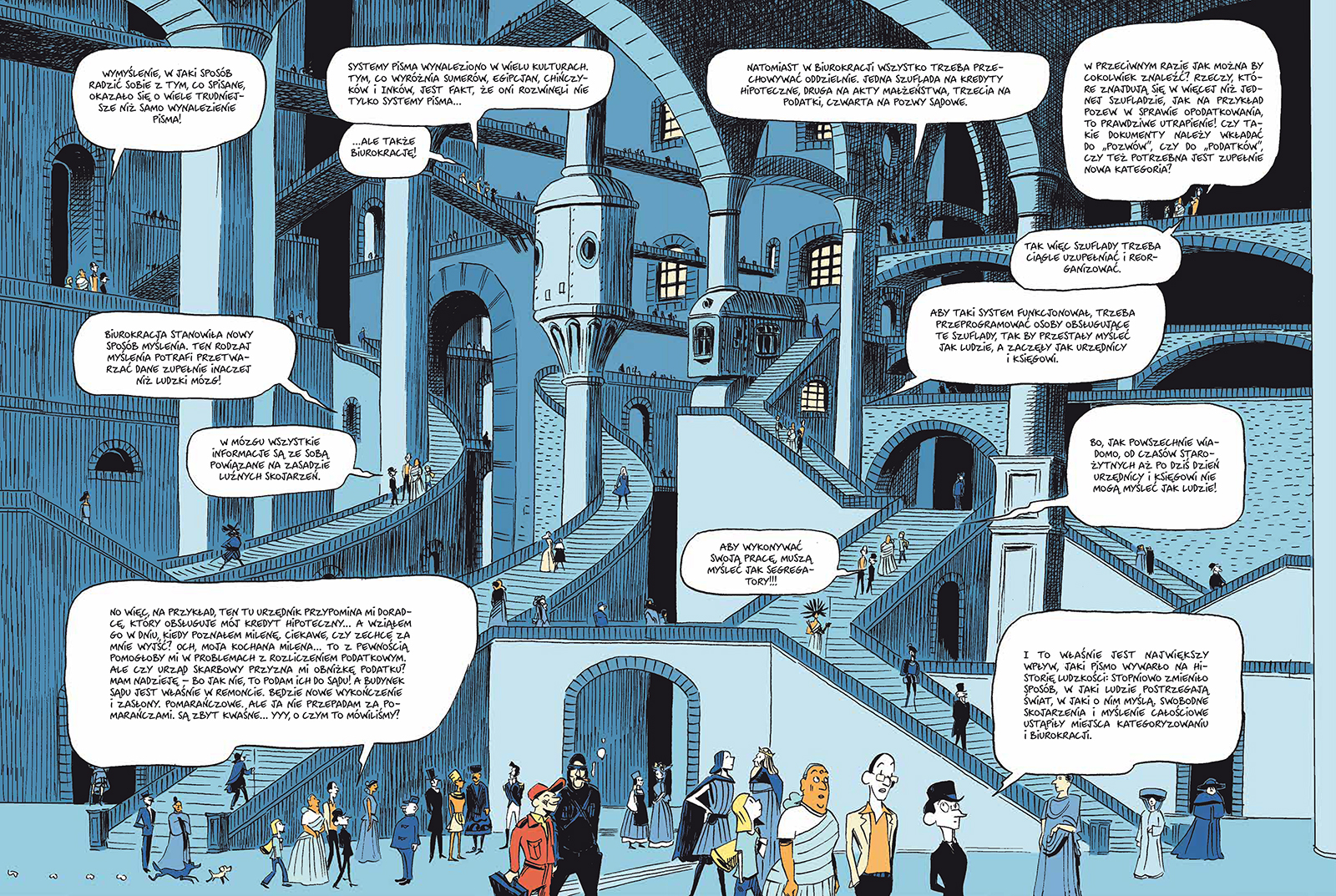 Na koniec pozycja dla nastolatków, będąca bardzo ciekawą i krytyczną wizją rozwoju ludzkiej cywilizacji, której fundament zasadza się na rewolucji agrarnej. Autorzy potrafią opowiadać o dziejach ludzkości na poziomie meta, a jednocześnie komiks jest przeładowany tekstem, co twórcy starają się rozładować różnymi „fajnymi” przerywnikami. Każdy, kto czyta komiksy na co dzień, zauważy to po pierwszych kilku stronach. Tak skondensowana wiedza powinna być rozpisana na 500, a nie na 250 stronach, ale wtedy być może taki opasły tom przeraziłby niektórych czytelników. Pomimo tego narracyjnego mankamentu – zdecydowanie warto.