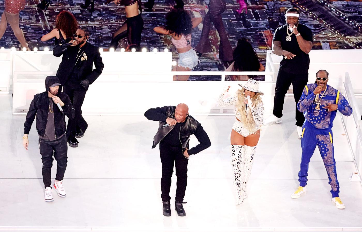 Poza drobnymi akcentami Super Bowl nie doczekało się dotąd spójnej prezentacji amerykańskiego rapu. Również dlatego tegoroczna – kilkunastominutowy miks przebojów sprzed mniej więcej 20 lat – zrobiła na komentatorach takie wrażenie. Rozpoczęły ją i zakończyły utwory z multiplatynowego (prawie 8 mln egz. sprzedanych w samych Stanach Zjednoczonych) albumu „2001” producenta i rapera Dr. Dre wydanego w 1999 r. – przeboje z udziałem Snoop Dogga i Eminema. A po drodze, wśród nowojorskich gwiazd (Mary J Blige, 50 Cent), znalazł się jeszcze jeden młodszy raper urodzony, podobnie jak Dre, w kalifornijskim Compton, czyli Kendrick Lamar.