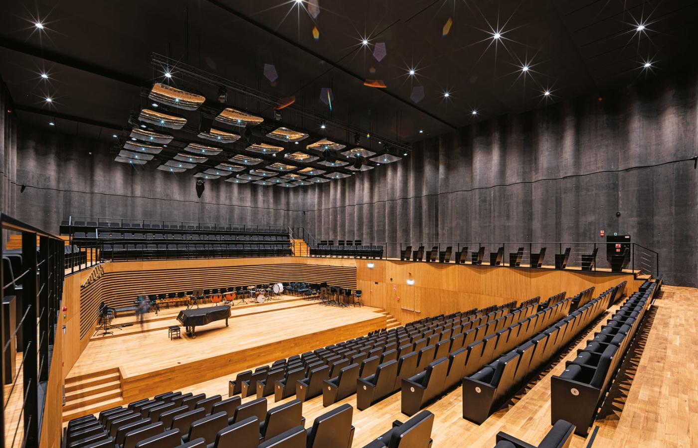 Został wysoko oceniony za przemyślaną funkcjonalność. Optymalny wydaje się zarówno wewnętrzny układ pomieszczeń, jak i sposób zagospodarowania otoczenia. Sama sala koncertowa jest skromna, ale elegancka. Przyjęto tak modne w ostatnich dekadach rozwiązanie polegające na umieszczeniu widowni wokół sceny, a nie naprzeciwko niej. Sala koncertowa jest połączona z budynkiem szkoły podziemnym łącznikiem, a na powierzchni między nimi powstała przyjemna, ogólnodostępna strefa miejska, rodzaj miniskweru.