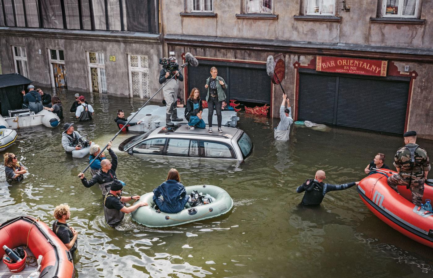 Scenę obrony wałów przeciwpowodziowych w podwrocławskiej wsi kręcono w Czosnowie pod Warszawą. Rozmach inscenizacyjny niczym przy produkcjach batalistycznych. – To był sam początek zdjęć, lipiec ubiegłego roku, noc, w akcji 400 statystów, helikoptery Mi-2 i Mi-8 ściągnięte z Krakowa, tego drugiego zostały w kraju już tylko pojedyncze egzemplarze, ale staraliśmy się trzymać realiów 1997 r. – wspomina Anna Kępińska, producentka i pomysłodawczyni serialu „Wielka woda” Netflixa. Sama pochodzi z Wrocławia, brała udział w obronie miasta przed nadciągającą falą i temat powodzi stulecia chodził za nią od wielu lat.