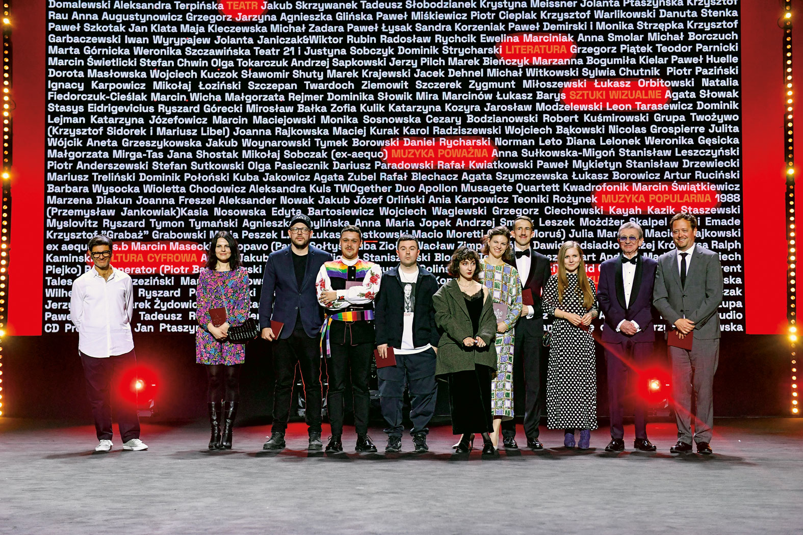 Wcześniej społeczny aspekt gali wydawał się oczywisty i mieścił się w założeniach urządzanej co roku imprezy. Zawsze była to okazja, by skomentować polityczne i kulturalne aktualia, poplotkować, wymienić uwagi o werdyktach kapituły naszej nagrody. Nie inaczej było teraz, tyle że spotkaliśmy się po pandemicznej przerwie i okazało się, że sam ten fakt jest wartością. Oczywiście dla ogólnego nastroju publiczności zgromadzonej w teatrze, ale pewnie i tej śledzącej transmisję telewizyjną przeprowadzoną przez TVN istotny był jubileusz. Na samym początku gali współprowadzący (wraz z Grażyną Torbicką) redaktor naczelny POLITYKI Jerzy Baczyński przypomniał, że w ciągu tych trzech dekad nasz tygodnik i jego czytelnicy przeżyli rozmaite wzloty i upadki polskiej kultury; że jako redakcja 30 lat temu byliśmy dość naiwnymi optymistami i mimo wszystko tego optymizmu do końca nie straciliśmy. Udało się to, bo przecież nagradzani przez POLITYKĘ twórcy w swoich dalszych karierach potwierdzali swoją artystyczną rangę kolejnymi sukcesami. Przykładem może być choćby Dorota Masłowska, która dwie dekady temu (miała wtedy 20 lat) otrzymała Paszport, a teraz została nagrodzona laurem Kreatora Kultury.
