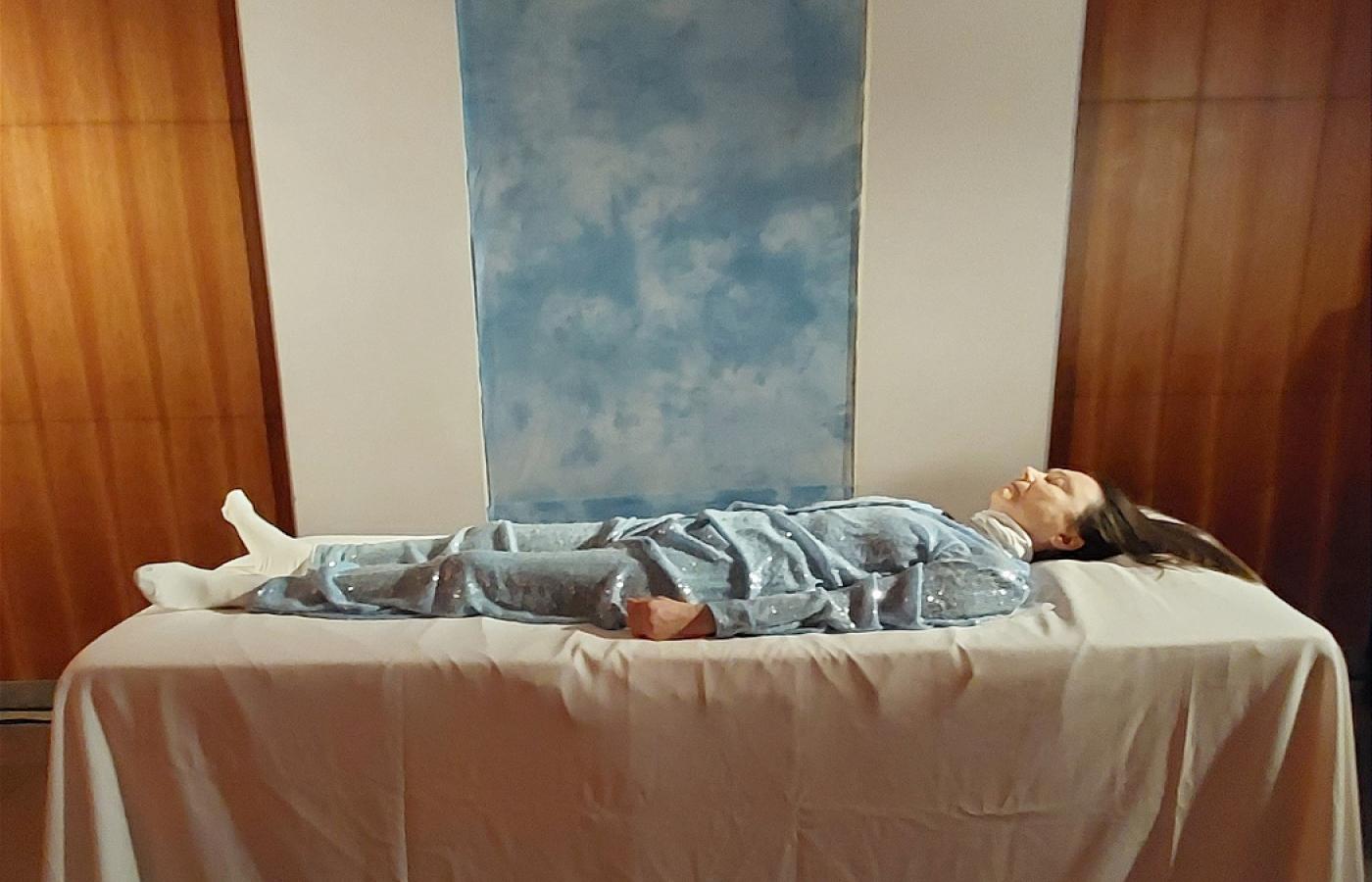 „Zdecydowałam się przespać swoje 60. urodziny. We śnie, w który zapadam, chcę opowiedzieć sobie historię ostatnich 30 lat wypełnionych twórczością. Sen jest również tekstem; spróbuję go zapamiętać, a potem zapisać i przekazać – sobie i gościom. Rejestracja filmowa tego zdarzenia pozwoli mi obejrzeć reakcję publiczności, przyjaciółek i przyjaciół, którzy dla mnie wiele znaczą, i przygodnych widzów, z którymi zawsze trzymam kontakt, w dobrych i złych momentach mojego życia. Nie wiem, co mnie czeka. Czy przebudzenie będzie pamięcią o koszmarze, czy może przemienieniem? Niepewność była zawsze i jest motorem moich działań, a sen jest tym rodzajem »aktywności«, o której efektach czasem dopiero po latach się dowiadujemy.