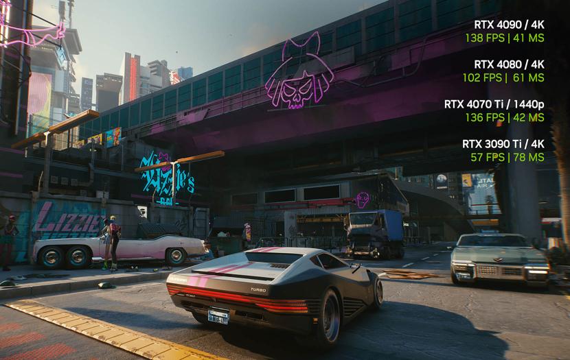 Sprawdźmy, jak wielkie wsparcie oferuje DLSS 3.0, testując komputer wyposażony w nową kartę graficzną GeForceNvidia RTX 4080 w wersji Gainward Phoenix (ustawienia fabryczne, bez podkręcania) w najbardziej dziś efektownej grze komputerowej, jaką jest „Cyberpunk 2077”. Ze względu na najróżniejsze, wymagające olbrzymiej mocy obliczeniowej fajerwerki wizualne, gra ta jest niezwykle trudnym wyzwaniem dla podzespołów komputerowych. Reasumując, jeśli dany komputer jest w stanie zapewnić płynny, detaliczny, efektowny obraz w „Cyberpunku 2077” – z włączonym trybem śledzenia promieni, rzecz jasna – to da sobie śpiewająco radę także z każdą inną grą.