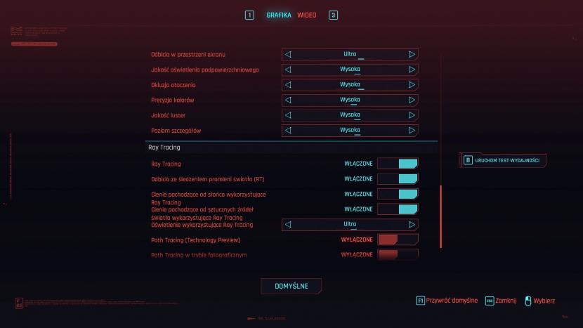 „Cyberpunk 2077” przy włączonej funkcji śledzenia promieni, w najbardziej obciążającym komputer, ale zarazem gwarantującym najwyższą jakość obrazu ustawieniu „ultra”, był wyświetlany przy średniej liczbie 165 klatek na sekundę. Teoretycznie, bo pułap możliwości wykorzystywanego monitora to 144 Hz, czyli 144 klatki na sekundę. W najtrudniejszych momentach płynność projekcji spadała do 74 klatek na sekundę, czyli wciąż znacznie powyżej granicy komfortu. Powyższe liczby pozwalają przyjąć za pewnik, że także w rozdzielczości 4K gra „Cyberpunk 2077” byłaby odtwarzana przy tej konfiguracji komputera z w pełni satysfakcjonującą wydajnością.