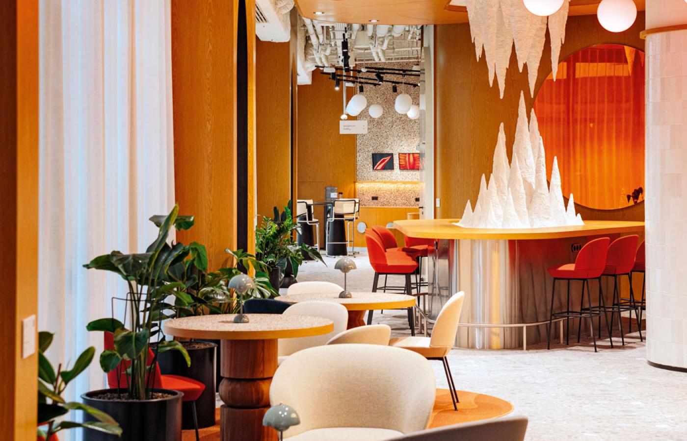 Architekci zrezygnowali z białych muzealnych ścian, kreując wnętrza bardziej hotelowe, pełne kolorów, wzorów i faktur. Znajdziemy nawiązania do klasycznych rozwiązań wystawienniczych, chociażby charakterystyczne nisze, pałacowe łuki. W ich oprawie fotografia Zofii Kulik „Wspaniałość siebie III”, na której artystka przypomina królową Elżbietę II, prezentuje się niczym w galerii Zachęta. Oprócz pomieszczeń dostępnych tylko dla pracowników ING zaprojektowano strefę otwartą dla wszystkich chętnych – z kącikami do spotkań, wspólnym stołem do pracy i kawiarnią PrzeLew.