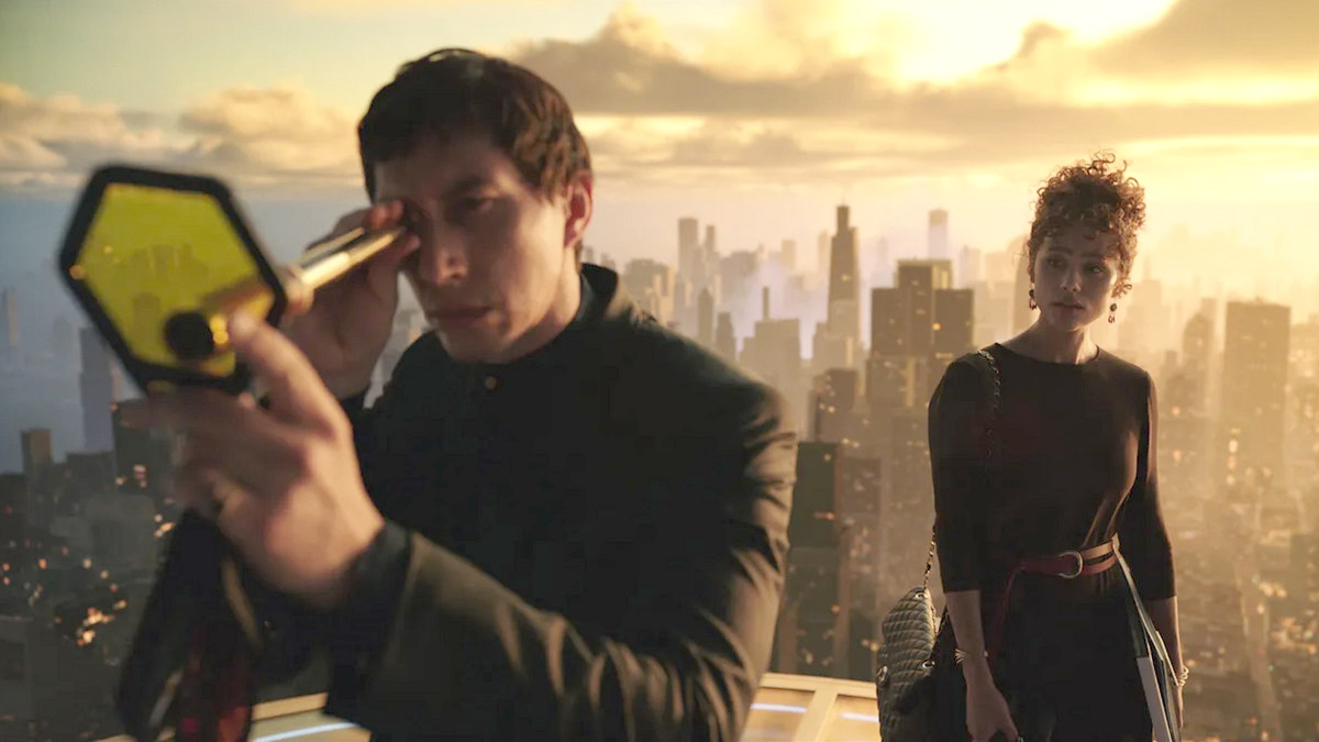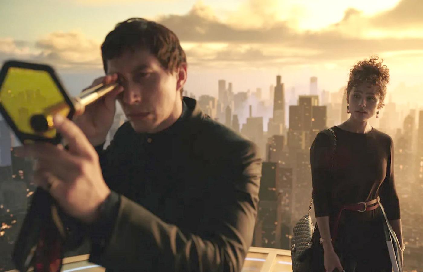 Przełom, i to radykalny, przychodzi w połowie filmu, gdy oto nagle po wyciemnieniu wychodzi zza sceny człowiek i czyta na żywo z karteczki przygotowane pytanie do postaci granej przez Adama Drivera. Zaś aktor na ujęciu z telefonu komórkowego odpowiada na nie. By chwilę później wszystko wróciło do utartej konwencji. Tym jednym happeningowym chwytem Coppola niszczy tradycyjny model spektaklu filmowego. Wprowadzając nowatorskie rozwiązanie, na które obecna technologia nie jest w żaden sposób przygotowana, podcina gałąź, na której sam siedzi, bo przecież trudno sobie wyobrazić, by na każdym seansie „Megalopolis” umówiona osoba w trakcie projekcji wychodziła i czytała jedno zdanie. Stąd pewnie krążące w sieci plotki o niemożliwych do spełnienia warunkach rozpowszechniania filmu.