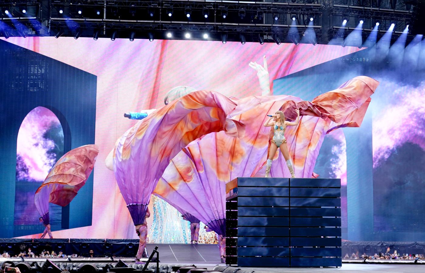 2. Wieloczęściowe widowisko „The Eras Tour” spełnia wszystkie wymagania spotkania dzisiejszej publiczności z gwiazdą. Odświeża się efektownie w każdej kolejnej części co 20–30 minut, co chwila obiecując wręcz coś, co będzie kulminacją wieczoru, więc filmować – a to robi duża część współczesnej widowni – trzeba niemal non stop.