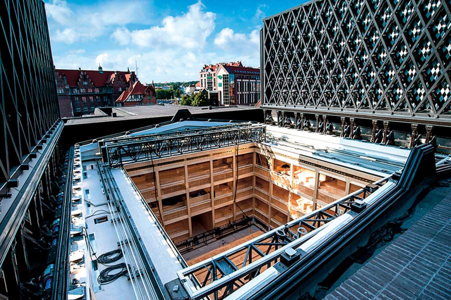 Przed dekadą samotnie stojący na terenach postoczniowych monumentalny gmach budził naprawdę różne skojarzenia. Przywodził na myśl nawet... „Gwiezdne wojny”. Można się było spotkać z opiniami, że wygląda jak znany z czwartej części kultowej serii ogromny pojazd Sandcrawler. Coś w tym jest, choć architekci, przynajmniej oficjalnie, nie przyznawali się do inspiracji science fiction. Tak czy inaczej, statek (kosmiczny) dziesięć lat temu wylądował na nieco postapokaliptycznych terenach postoczniowych. Został na dobre. I dobrze.