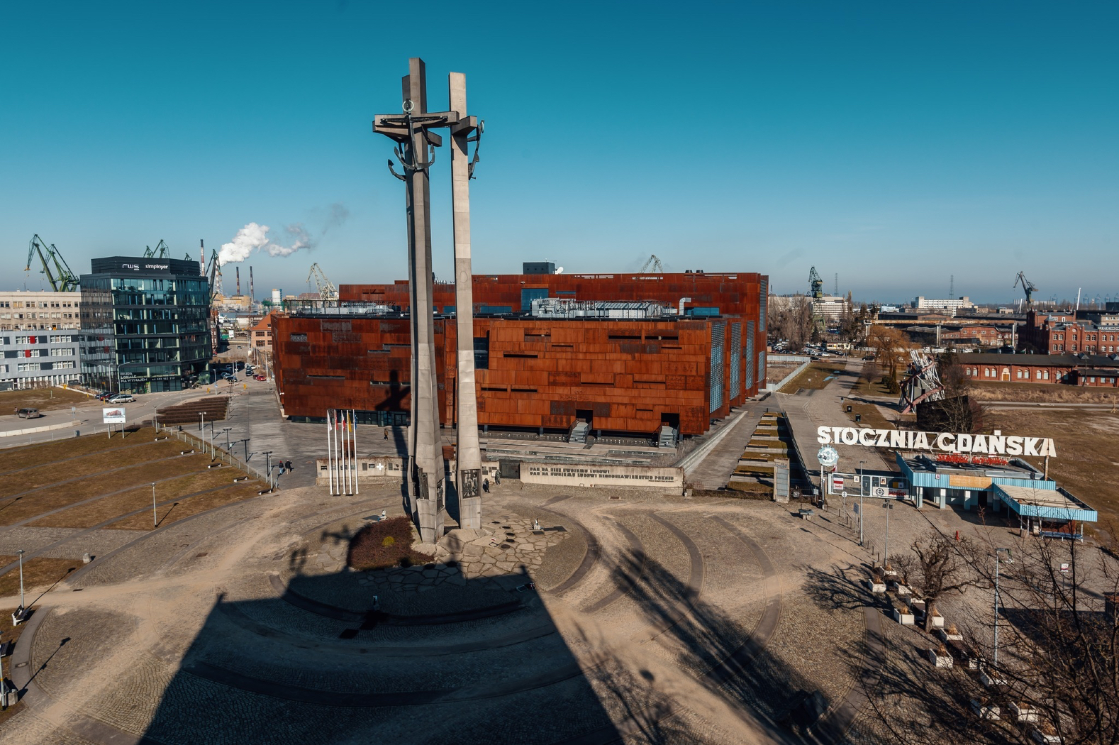 Jedne obiekty wyrastają, inne z kolei znikają. Do połowy 2022 r. pod gmachem stały „Bramy” Grzegorza Klamana. Pojawiły się w 2000 r., czyli na długo, zanim ECS nabrał ostatecznego kształtu. Wielka instalacja gdańskiego artysty powstała, by uczcić 20. rocznicę podpisania porozumień sierpniowych. Przeistoczyła się w charakterystyczny punkt na terenach postoczniowych, spoczęła naprzeciw głównego wejścia ECS.