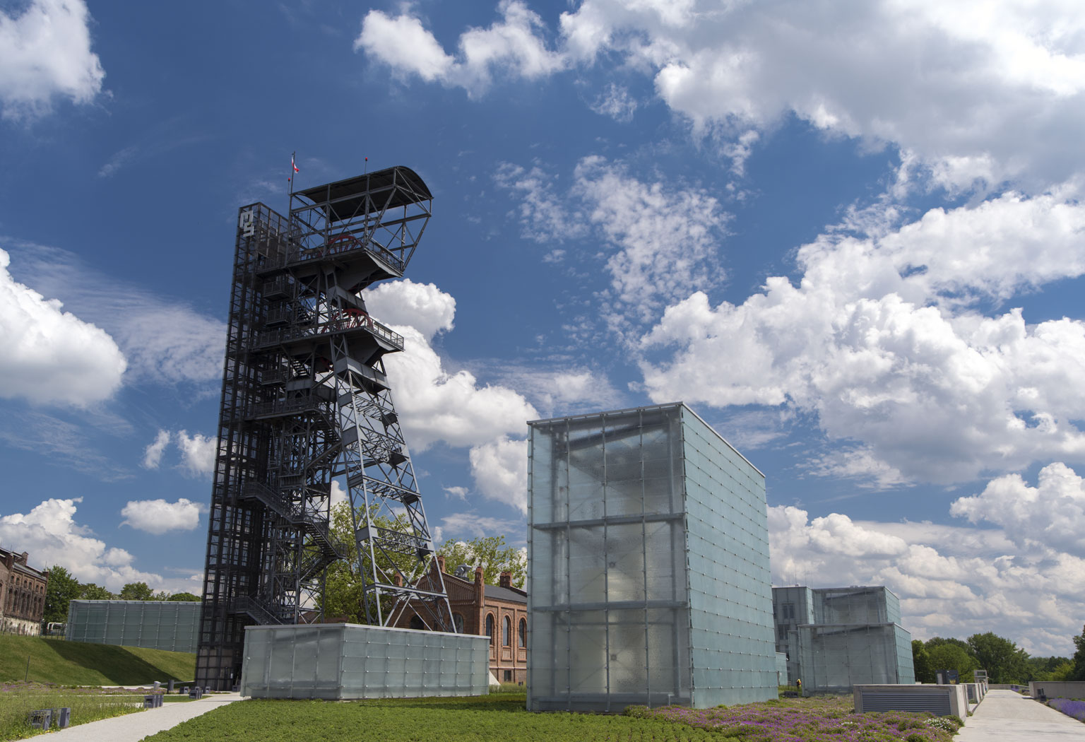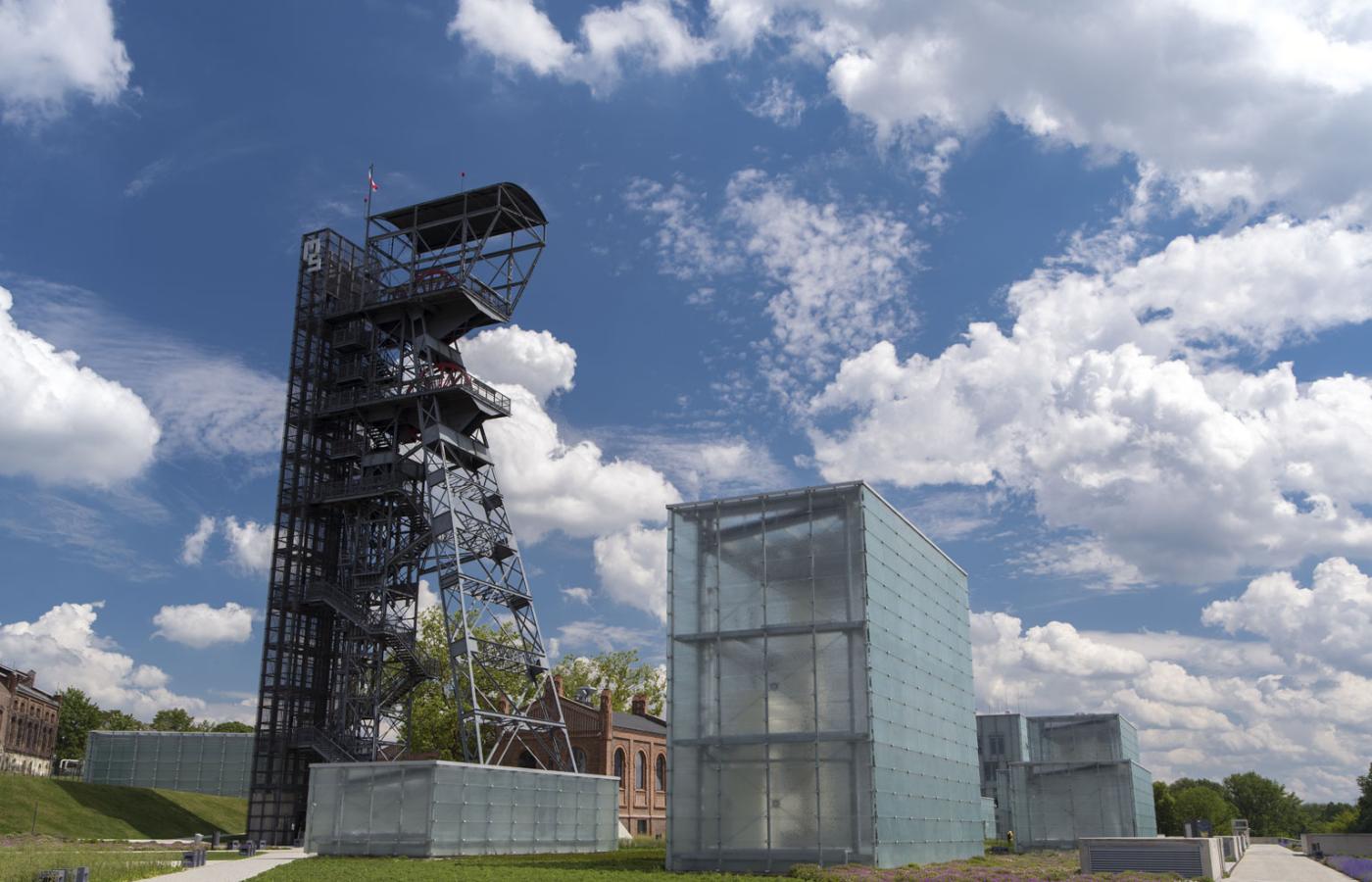 Architekci nowego gmachu nie zeszli zupełnie na drugi plan. Muzeum na powierzchni odznacza kompozycja szklanych kubików – część z nich to świetliki wpuszczające światło słoneczne w głąb podziemnych sal. Nad całością góruje dawny szyb wyciągowy „Warszawa II”, który zaadaptowano na wieżę widokową. Z jej szczytu można podziwiać panoramę Katowic, ale i zmieniające się dynamicznie otoczenie Strefy Kultury, wokół którego wyrastają kolejne osiedla.