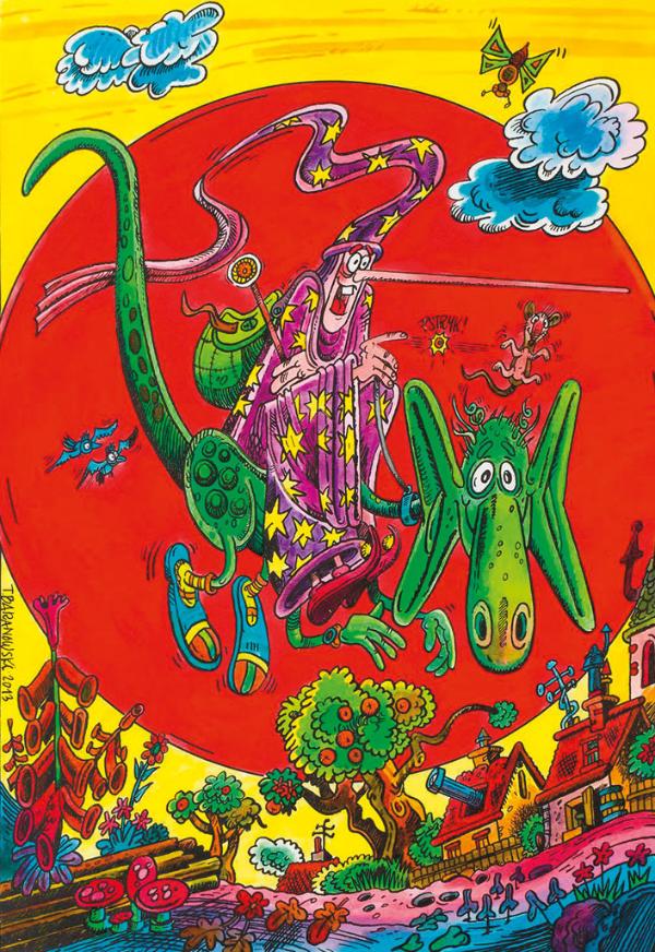 Dorosłym czytelnikom ekspozycja przypomni natomiast, jak wszechstronnym twórcą jest Tadeusz Baranowski. Potrafi naginać reguły komiksowego medium, a charakterystyczną karykaturalną kreskę zastąpić realizmem. W jego pracach można odnaleźć surrealistyczne poczucie humoru, niezapomniane zabawy słowem, liczne literackie i kulturowe nawiązania. Jego dowcip jest czasem łagodny i przyjazny, kiedy indziej frywolny i prowokacyjny, zawsze wielopiętrowy, bogaty w znaczenia.