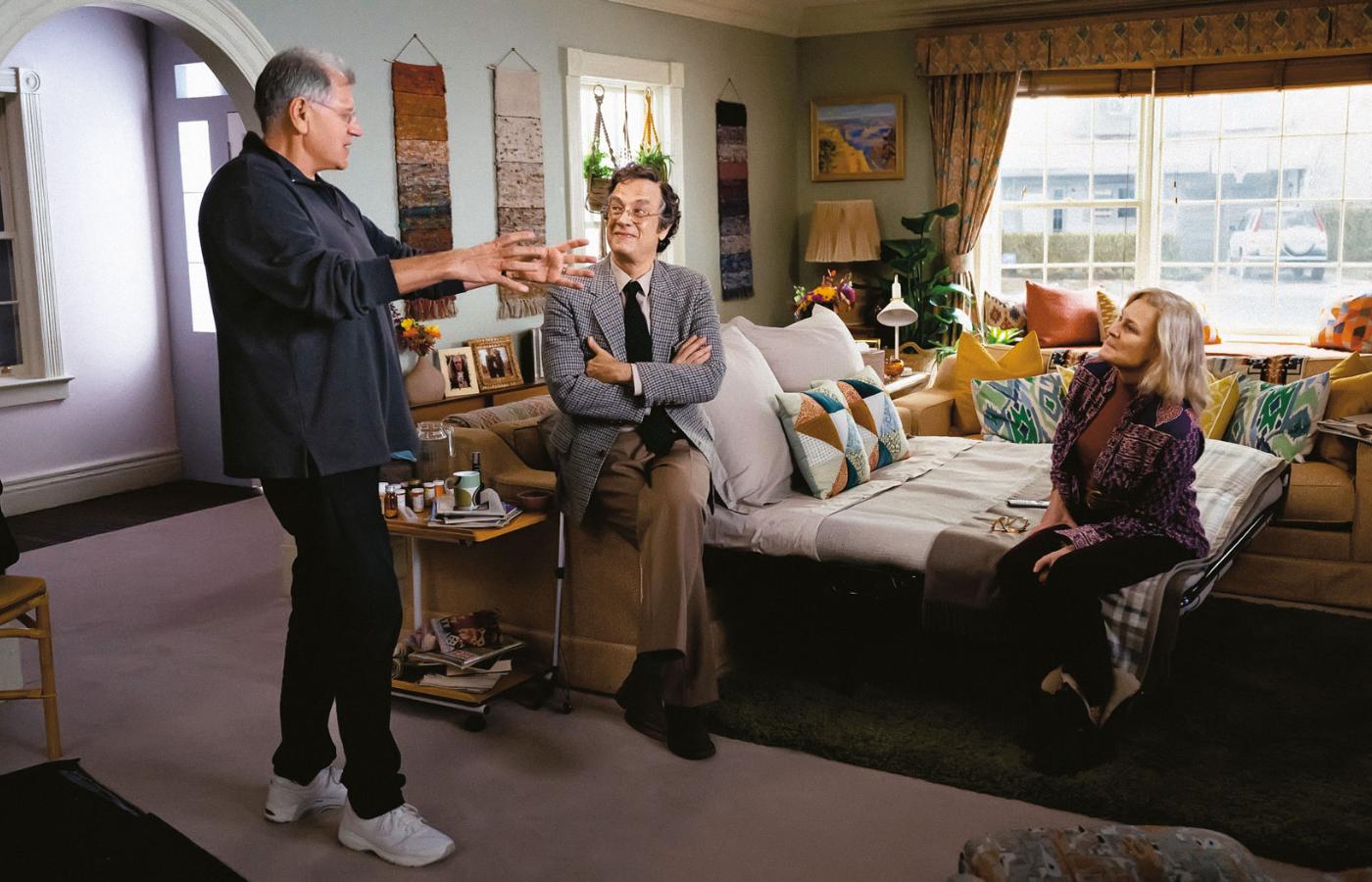 Na plakacie filmu „Here. Poza czasem” można zobaczyć Toma Hanksa i Robin Wright, jednak głównym bohaterem tej opowieści jest dom. Przestronny, klasyczny podmiejski budynek, wybudowany w użytkowym stylu Arts and Crafts. To tu rozgrywa się większa część fabuły, w krótkich, epizodycznych scenach streszczająca życie mieszkających w domu rodzin, przede wszystkim Richarda i Margaret Youngów (Hanksa i Wright w wielu scenach odmłodziły efekty specjalne wspomagane sztuczną inteligencją), ich rodziców i dzieci.