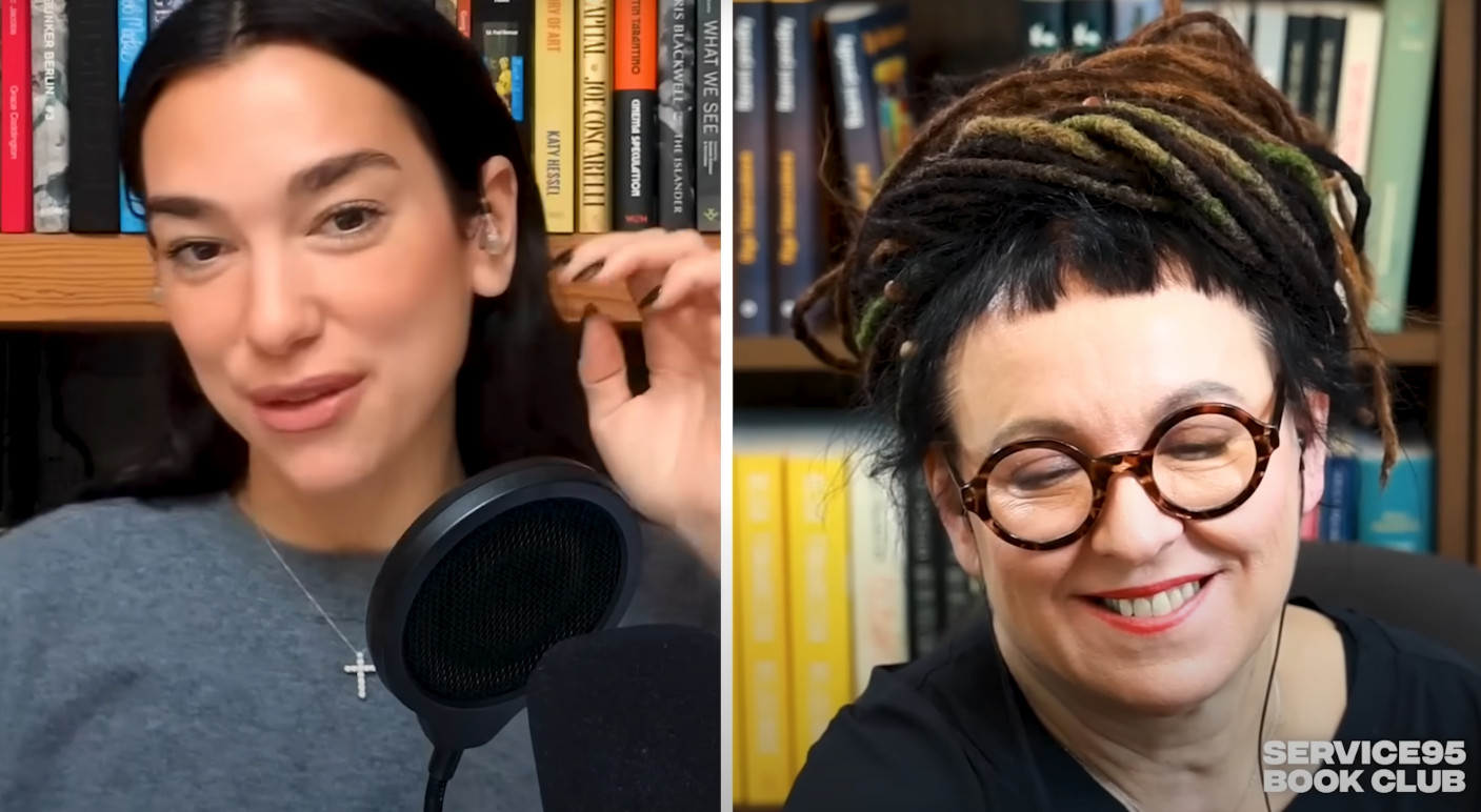 Pięć lat temu ogólną wesołość wzbudziła Hanna Lis pozująca z książką „Tak umierają demokracje” w szlafroku w wielkim łóżku; wyglądała jak przedstawicielka „odklejonych elit”. Dua Lipa na swoim zdjęciu wygląda po prostu naturalnie, jakby przyłapana przez sondę uliczną na spacerze i zapytana: „co ostatnio przeczytałaś”. Oba zdjęcia to oczywiście instagramowa fikcja, ale Lipa swój performance wykonuje z dużo lepszym wyczuciem. Może dlatego, że nie ma w tym ściemy. Faktycznie czyta książki i prowadzi klub czytelniczy w ramach swojej platformy Service95. Nie tylko poleca pozycje, ale przeprowadza wywiady z pisarkami i pisarzami; ostatnio był to George Saunders czy Ocean Voung (autor „Wspaniali jesteśmy tylko przez chwilę”), a także polski pisarz Tomasz Jędrowski, autor powieści napisanej po angielsku „Swimming in the Dark” (w Polsce ukazała się jako „Płynąc w ciemnościach”). Do rozmowy zaprosiła także Olgę Tokarczuk.