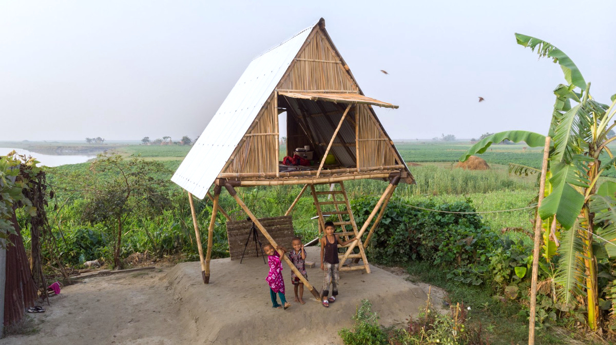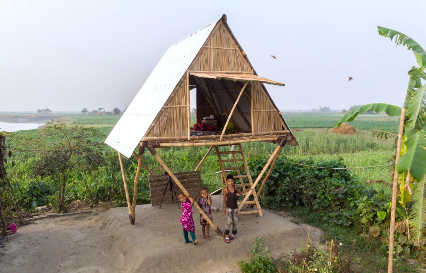 Marina Tabassum, nagradzana architektka autochtonka, wymyśliła taką konstrukcję chatek, by dało się je w razie konieczności przenieść. Mieszkańcy Khudi Bari mogą „rozbić” dom w bezpieczniejszej lokalizacji. „Nie musieliśmy tym razem się ewakuować. Zajęliśmy wyższe piętro. Mamy nadzieję, że już nigdy nie będziemy musieli rzucać się do ucieczki” – mówili prasie lokatorzy jednego z bambusowych domków. Architektka postawiła na tanie materiały – wzniesienie domu to koszt ok. 450 dol. wraz z robocizną. Uwolnienie setek tysięcy osób od lęku, że po raz kolejny dobytek pod ich nieobecność zostanie rozkradziony, to prawdziwa ulga.
